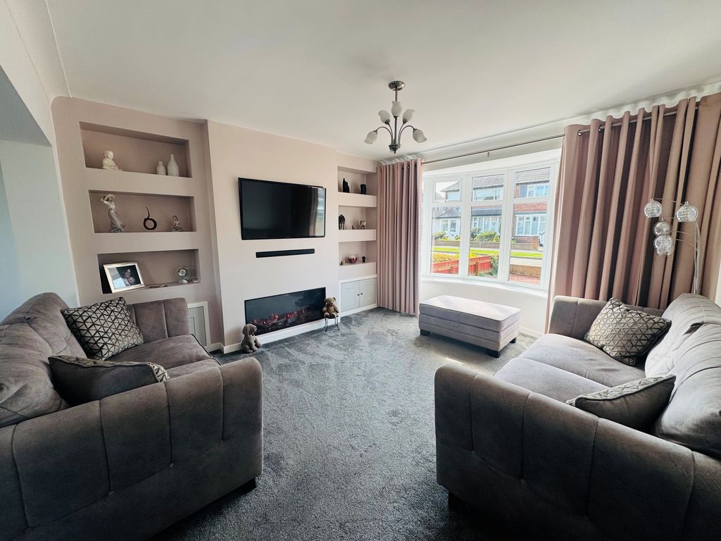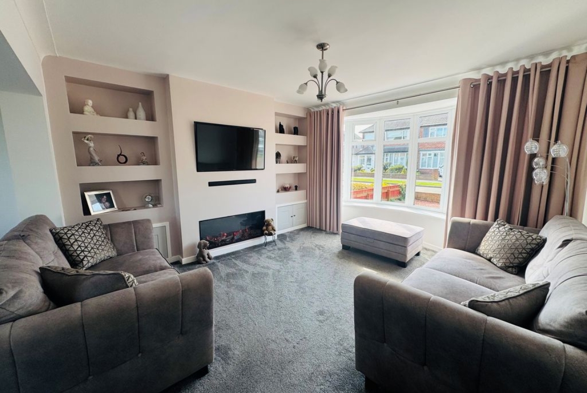 A beautiful, highly sought after family semi-detached family home in such a sought after location! Approximately a ten minute walk from Tynemouth beaches, within catchment for excellent local schools, close to amenities, local shops and excellent transportation links. Substantially improved by the current owner and showcasing a light and airy hallway, stunning lounge with features media wall, shelving and Infinity fire, attractive bow window, outstanding, re-fitted, open plan dining kitchen with peninsular and integrated appliances, door through to double length garage with utility space and access out to the garden. Impressive landing area, three double bedrooms, two with fitted storage, luxurious, re-fitted shower room with double shower cubicle and forest waterfall spray. Large, enclosed rear garden, front garden and driveway. We love, love, love!