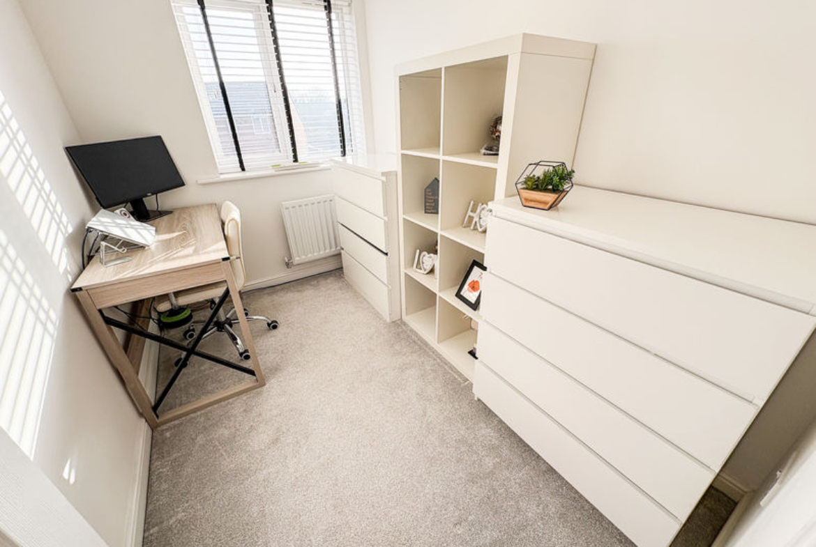 BEDROOM THREE: (rear): 8’97 x 6’0, (2.73m x 1.82m), double glazed window to rear and single radiator.