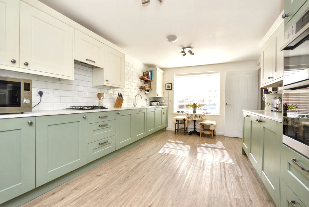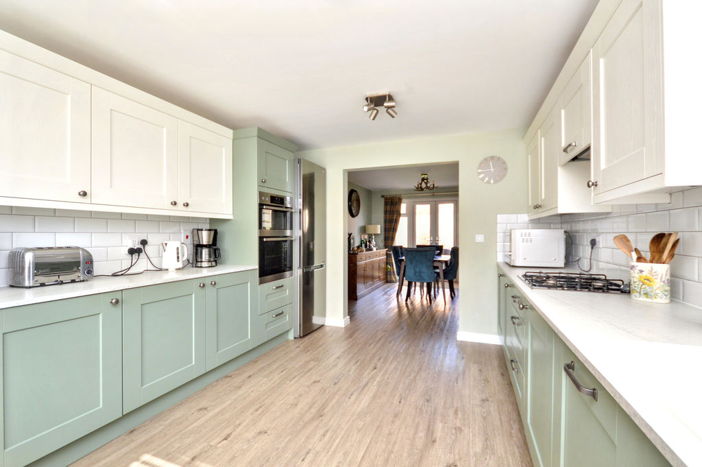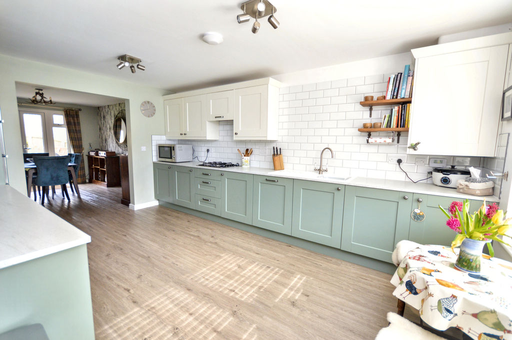 UPVC double-glazed window | Radiator | Tiled splashback | LVT flooring | Square arch to dining room and door to hall