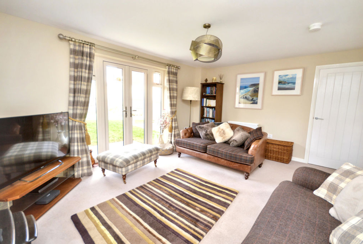 UPVC double-glazed French doors and windows to rear garden | Radiator | Doors to dining room and hall