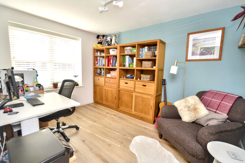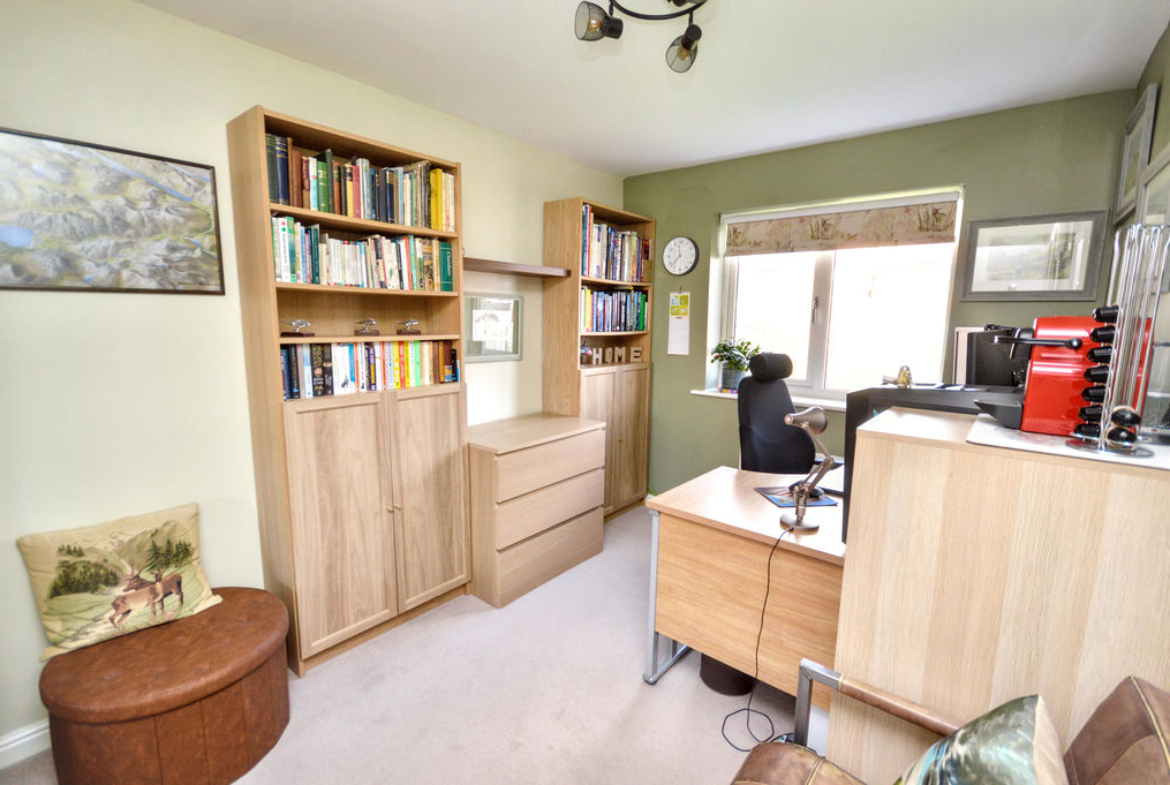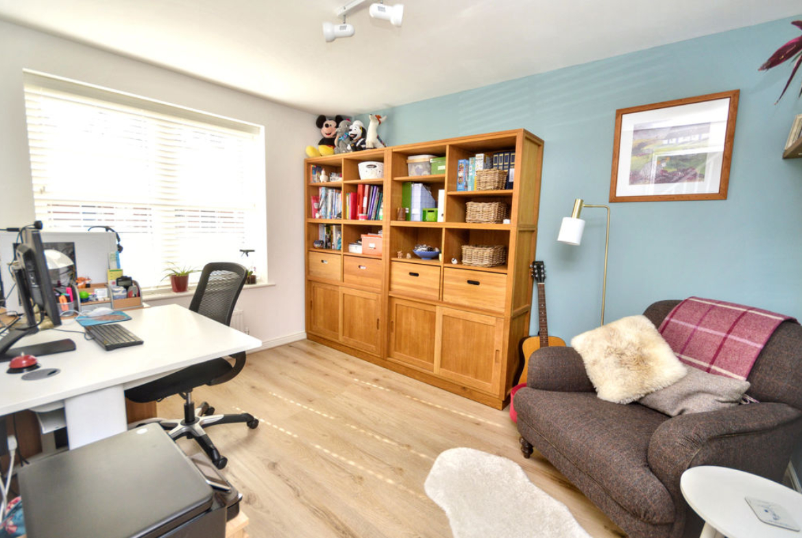 In addition to the main two reception rooms, there is a further reception room to the front of the property, offering excellent flexibility as a home office, playroom, or snug/TV room. A lovely feature of this home is the abundance of natural light, and a pleasant garden view with French doors leading out to the rear outside space from the living and dining room