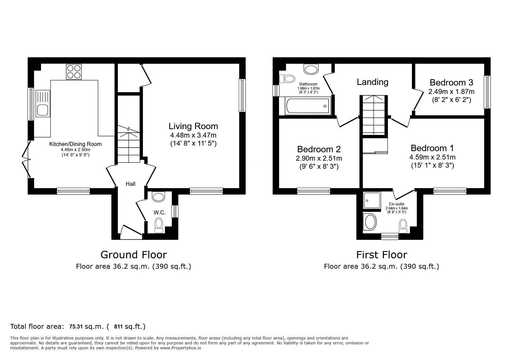 En-suite: 6’8 x 5’4 (2.03m x 1.62m)