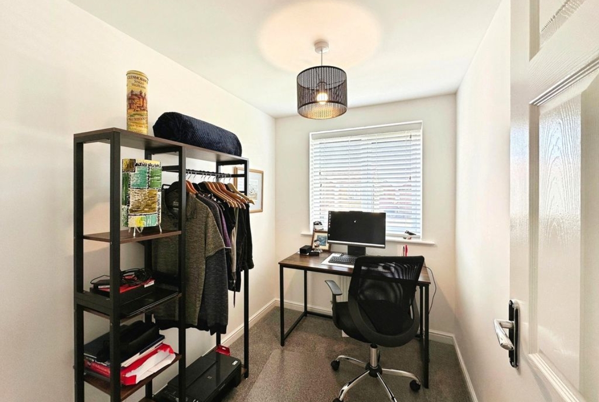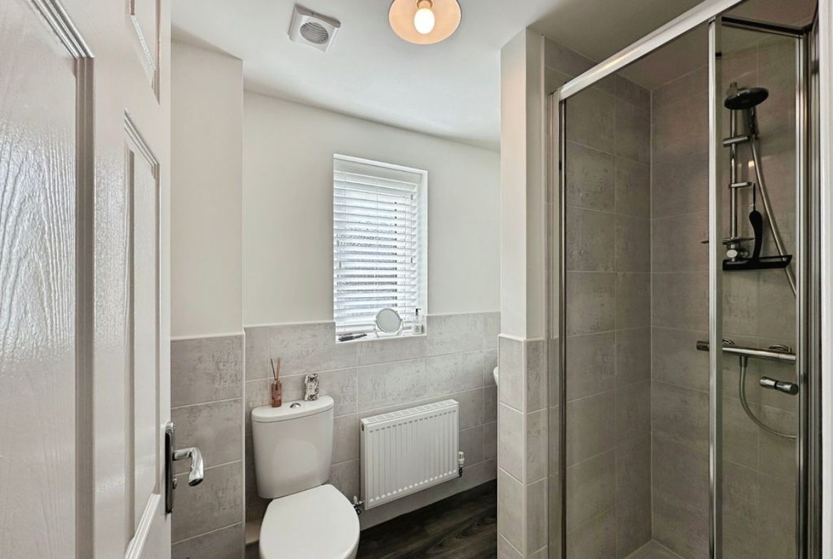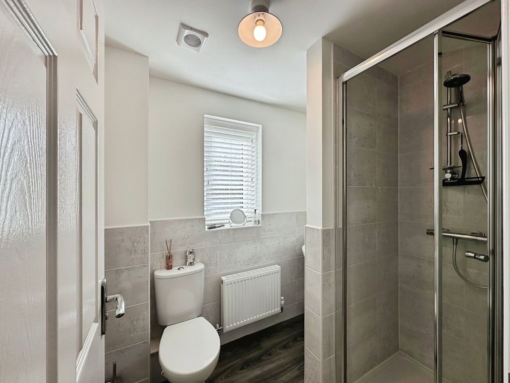To the upper floor of the accommodation, you have three generous sized bedrooms, two doubles and one single, which is currently being used as an office to suit. All rooms have been carpeted throughout and finished with white modern décor. The master bedroom, also comes with its own private en-suite shower room. The family bathroom has been fitted with W.C, hand basin and bath tub with shower over bath and screen. Both the en-suite and family bathroom are half tiled.