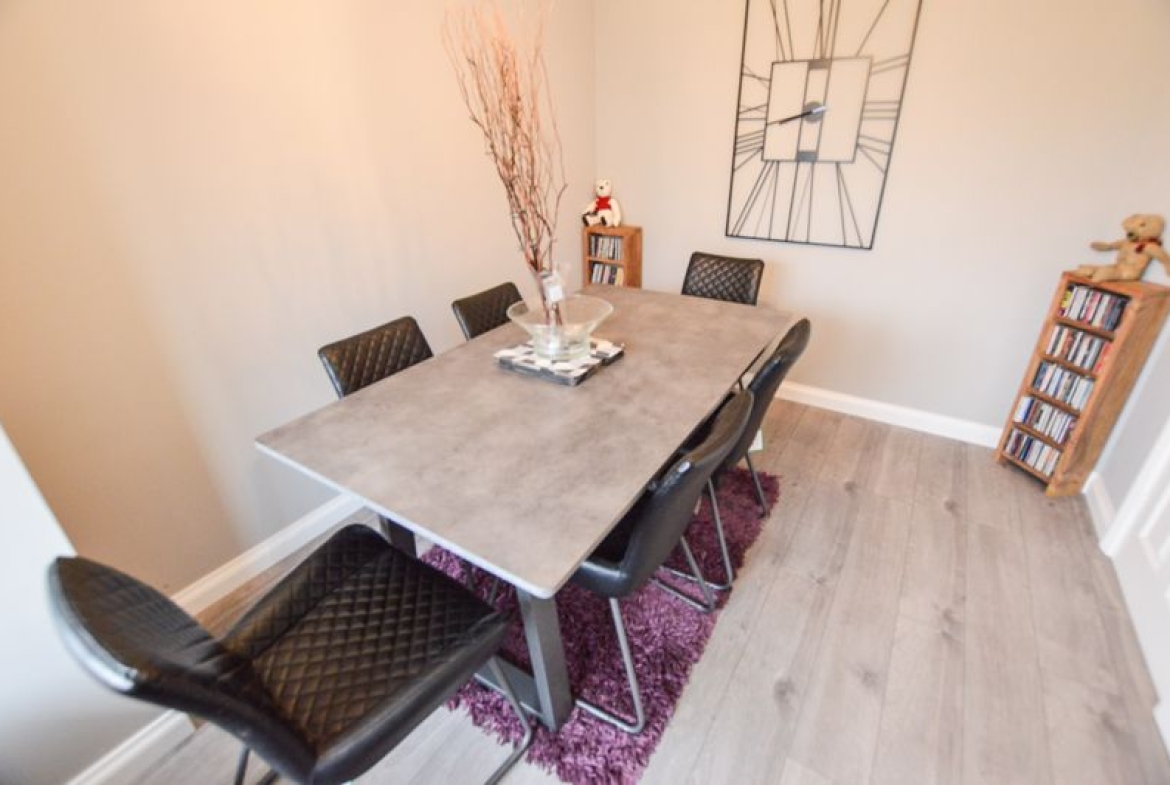 From the moment you step inside, the bright hallway sets a welcoming tone, with a handy downstairs W.C. just off the entrance. A separate dining room creates a lovely space for family meals and get-togethers, while the generous lounge is ideal for relaxing together at the end of the day. The contemporary kitchen is well-equipped for everyday cooking, and an adjoining utility room helps keep busy family life running smoothly.
