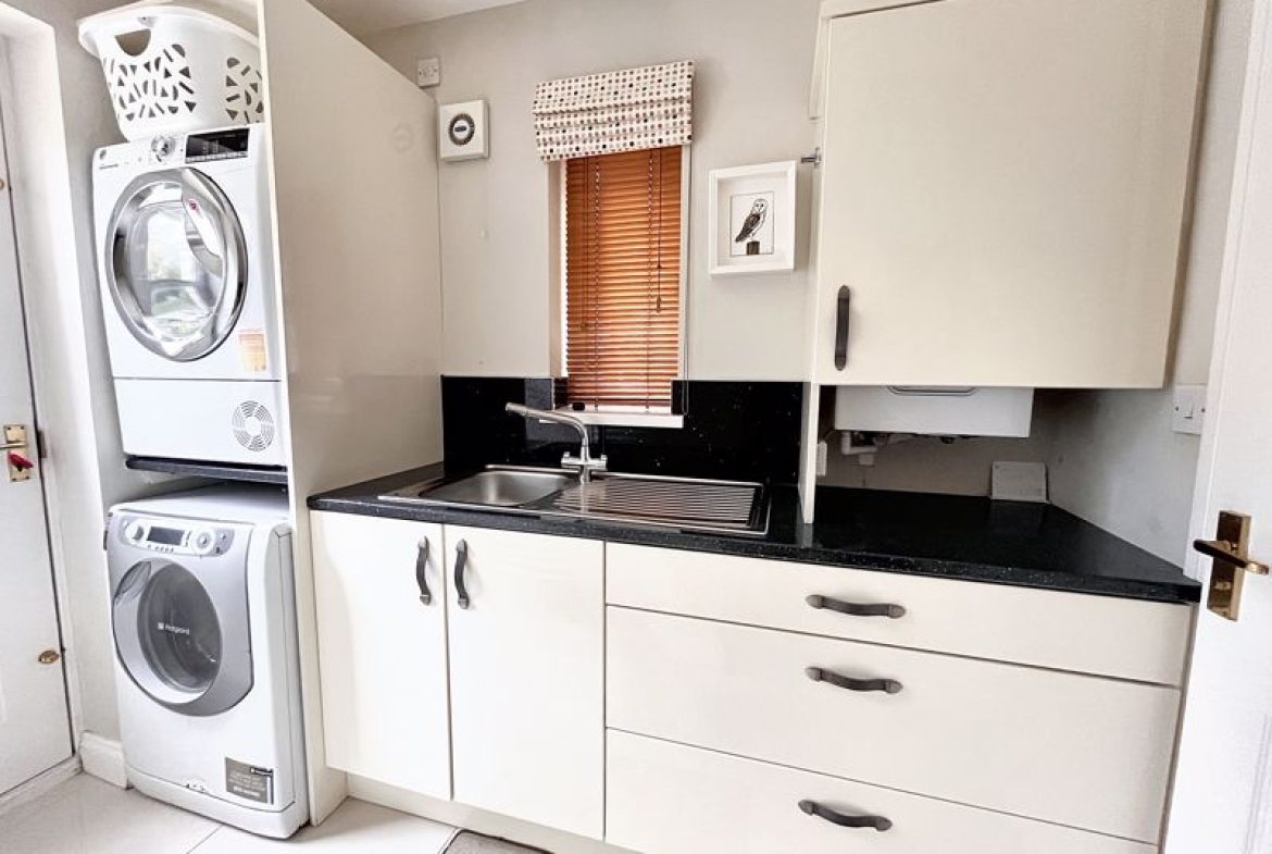 Fitted units incorporating; single stainless-steel sink, space for washing machine and tumble dryer