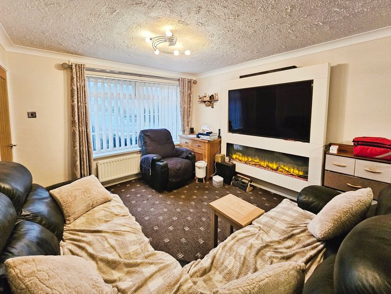 Double glazed window to front, double glazed patio doors to rear, two double radiators, media wall with electric fire.