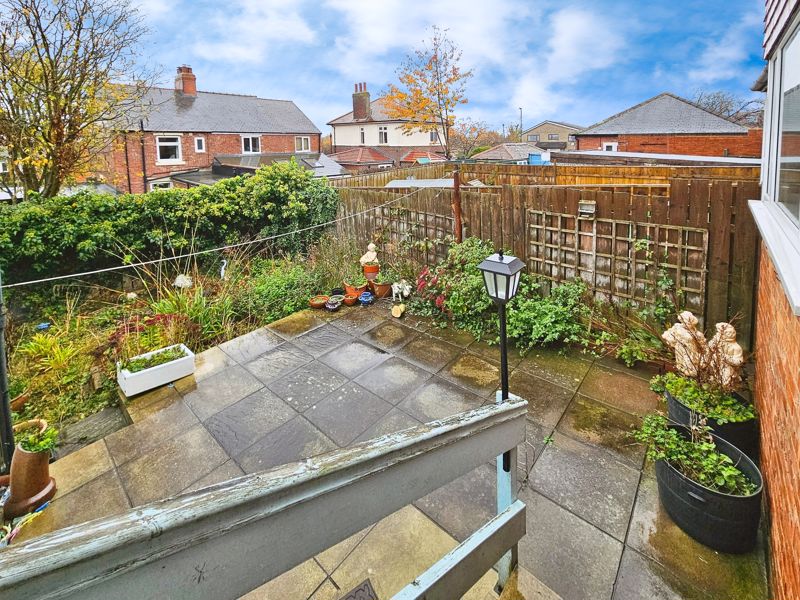 Low maintenance garden, flower beds, driveway. Low maintenance rear garden, patio area, bushes and shrubs.