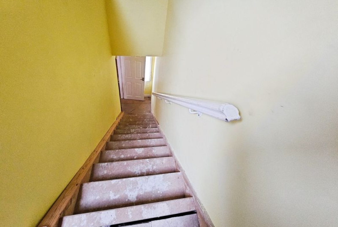 Stairs to first floor landing, laminate flooring, single radiator.