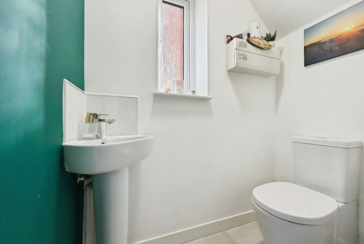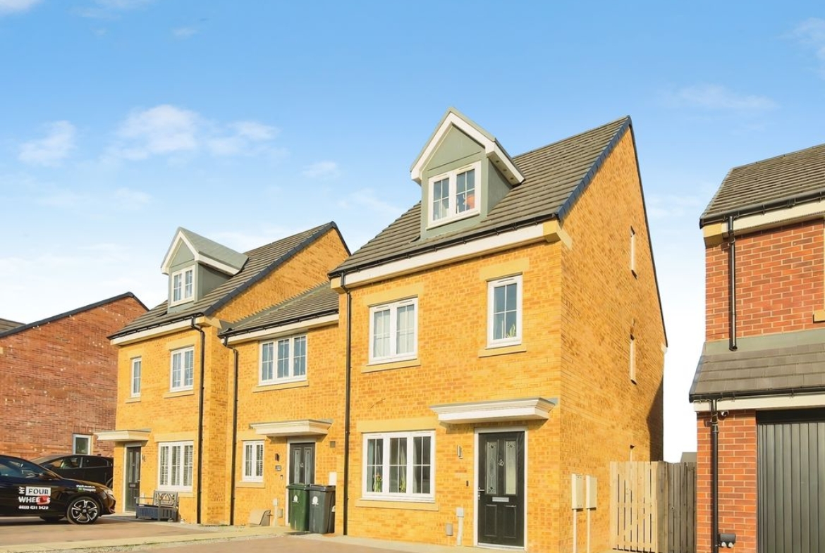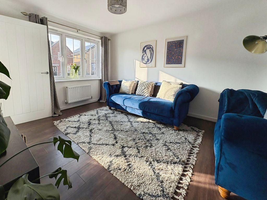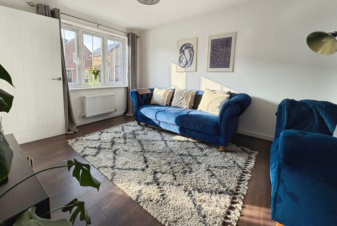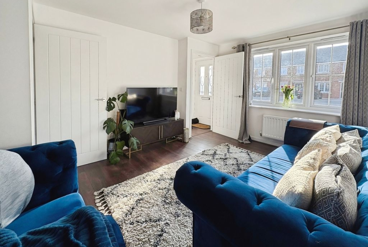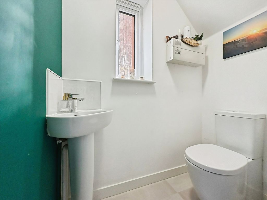 Set across three well-arranged floors, this impressive modern townhouse offers generous and versatile living space. Thoughtfully designed and beautifully presented throughout, the property combines practical accommodation with bright, well-proportioned rooms and a layout that flows effortlessly from floor to floor. The ground floor opens with an inviting entrance hallway leading into a spacious living room to the front, where large windows allow natural light to fill the space, creating a comfortable and welcoming environment. To the rear of the property is a superb dining kitchen, designed to be both practical and sociable, featuring a range of fitted units, integrated appliances and ample space for a dining table. French doors open directly onto the rear garden, creating a natural connection between indoor and outdoor living. A convenient ground floor WC completes the accommodation on this level. The first floor provides two well-proportioned bedrooms alongside a modern family bathroom finished with contemporary tiling and a shower over the bath. The bedrooms offer flexibility for a variety of uses. Occupying the entire top floor is an impressive principal bedroom suite. This generous room enjoys excellent proportions with attractive sloped ceilings and natural light from multiple windows. The space is further enhanced by fitted wardrobes and a stylish en-suite shower room, creating a private and comfortable retreat. Externally, the property benefits from an enclosed rear garden with lawn and patio seating area, offering a pleasant space for relaxing or entertaining outdoors. The property is well positioned within a popular residential development, providing convenient access to local amenities, schools and transport links Freehold, EPC: B, Council Tax Band: C, Electricity, Water, sewerage, heating mains connected, broadband: FTTP, Mobile coverage blackspot: No