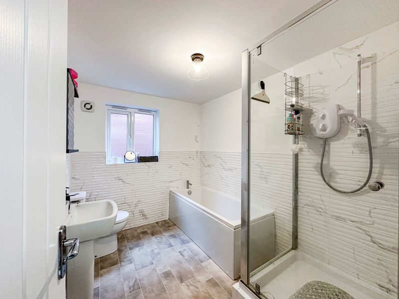 To the upper floor of the living accommodation, you have five generous sized bedrooms, four spacious double bedrooms and one single, which could be used as an office to suit. All bedrooms have been carpeted throughout and finished with modern décor. The master bedroom further benefits from its own en-suite bathroom, which comes fitted with W.C., hand basin, bath tub and walk in shower. The family bathroom has been partially tiled in a modern marble effect, with white walls and complimented with W.C., hand basin, bath tub and separate walk-in shower.