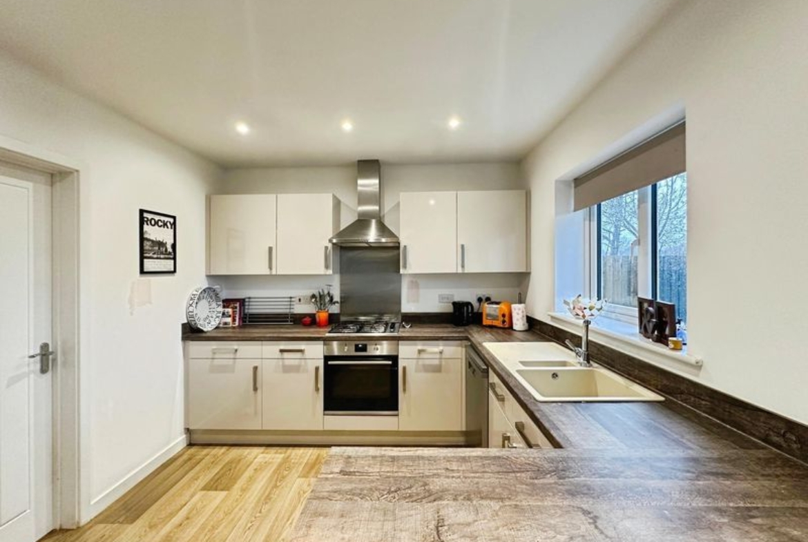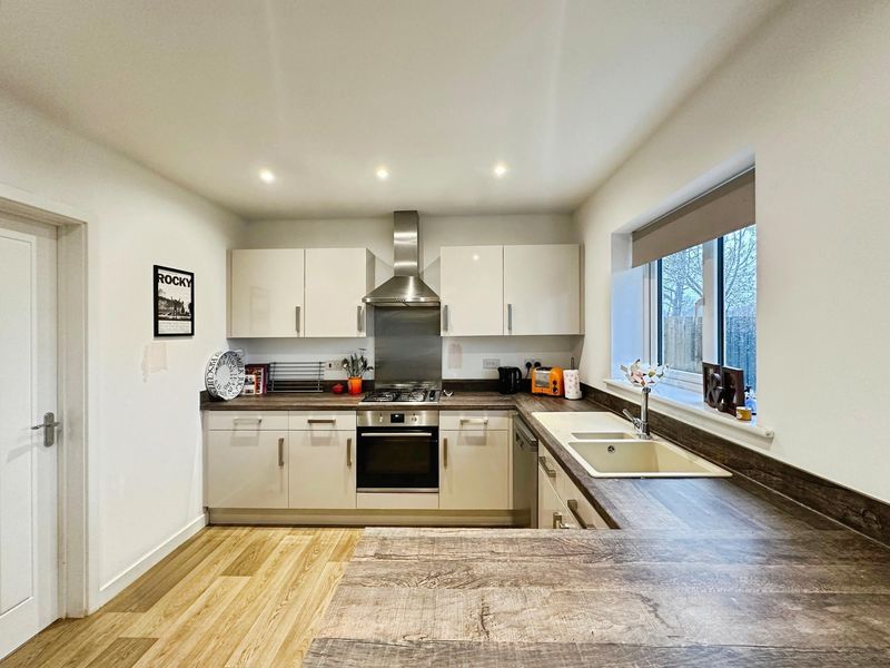 The property briefly comprises:- Entrance hallway, downstairs W.C., spacious bright and airy lounge with views over the front garden. The lounge has been fitted with light grey carpets and finished with white crisp walls. The impressive open plan kitchen/diner is a great space with ample room for your own dining room table and chairs and benefits from patio doors, offering direct access into a lovely enclosed rear garden. The high spec kitchen has been fitted with a range of modern gloss wall and base units, offering an abundance of storage. Integrated appliances include an electric oven, four ring gas hob and extractor fan. To the back of the kitchen, you further benefit from a separate utility room, with space for your own white goods.