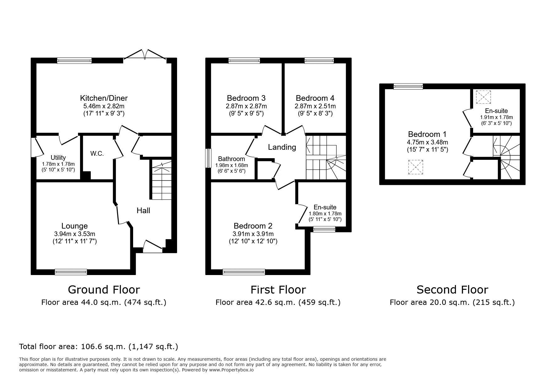 Ensuite: 5’10 x 6’3 (1.78m x 1.91m)
