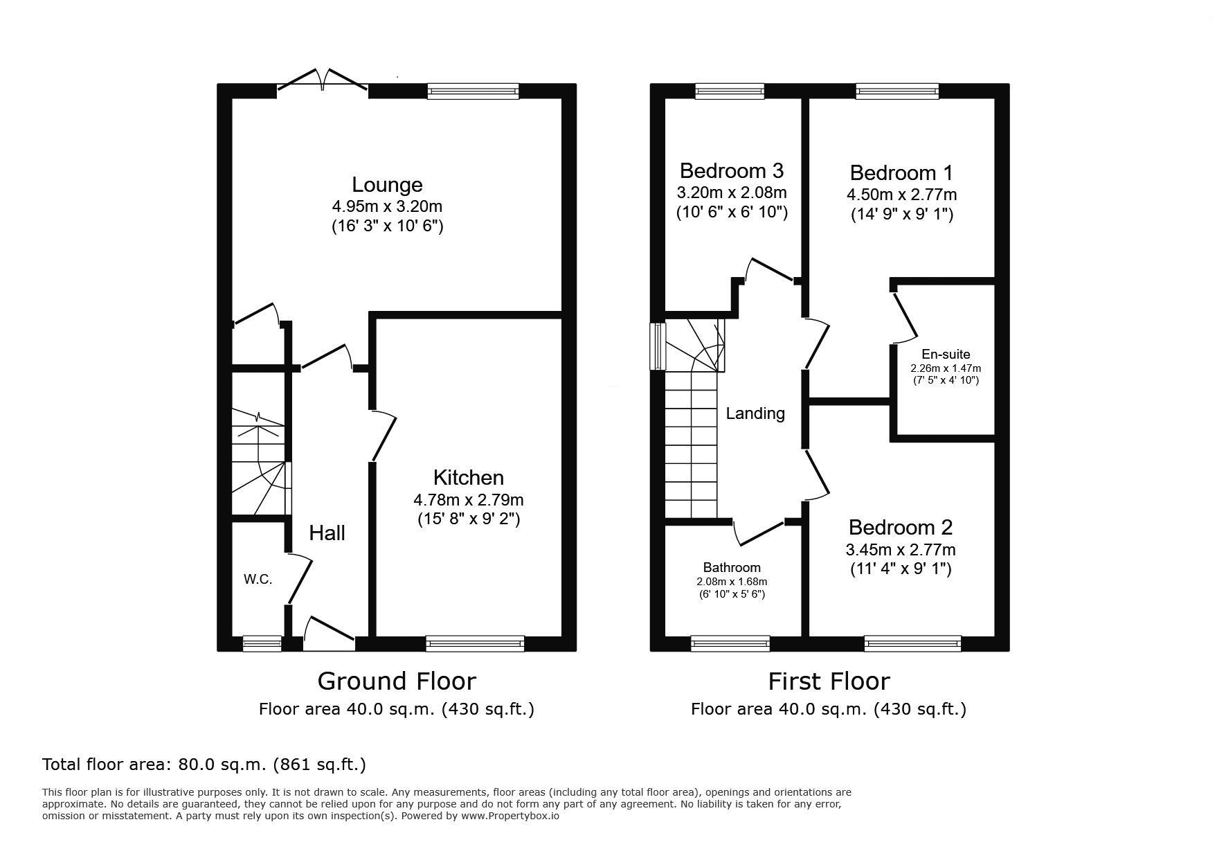 En-suite: 7’5 x 4’10 (2.26m x 1.24m)