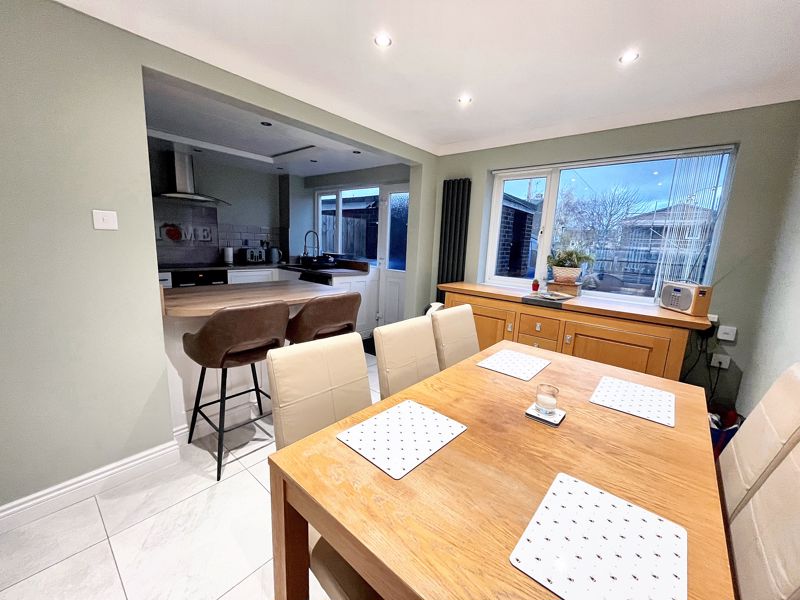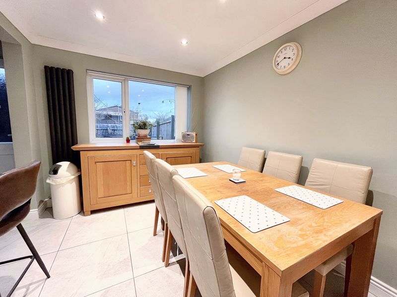 UPVC double-glazed window to rear | Tiled floor | Vertical radiator | Coving to ceiling | Ceiling downlights | Glazed double doors to living room