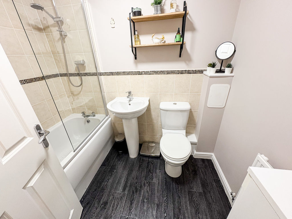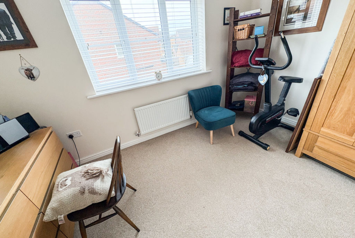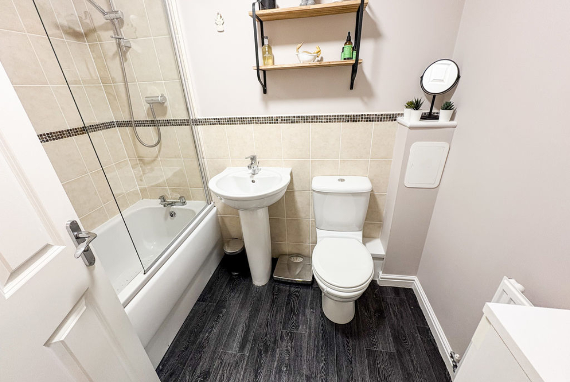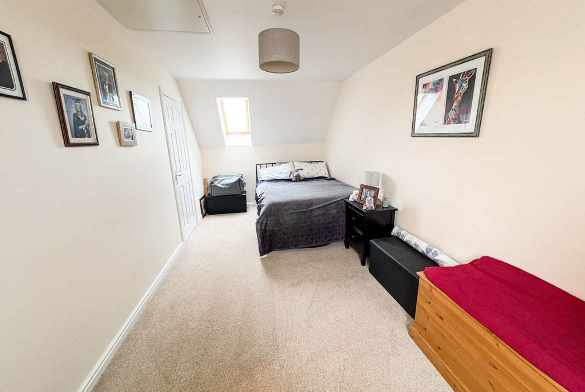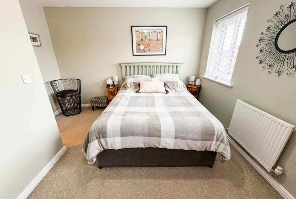 The first floor comprises two generously sized double bedrooms, along with a modern family bathroom fitted with a WC, hand basin, and a bath with overhead shower. Occupying the top floor, the spacious principal bedroom is also a double, benefiting from excellent storage and an abundance of natural light, creating a peaceful sanctuary.