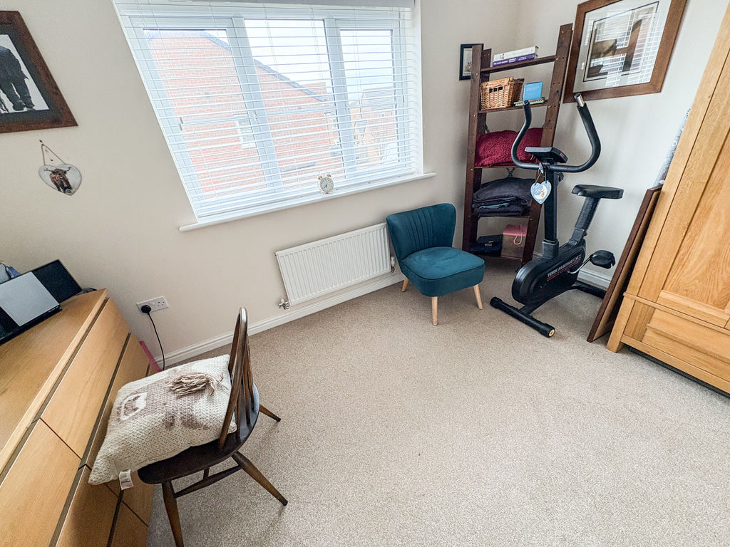 BEDROOM THREE: (front): 11’86 x 7’90, (2.61m x 2.40m), double glazed window to front, and single radiator.
