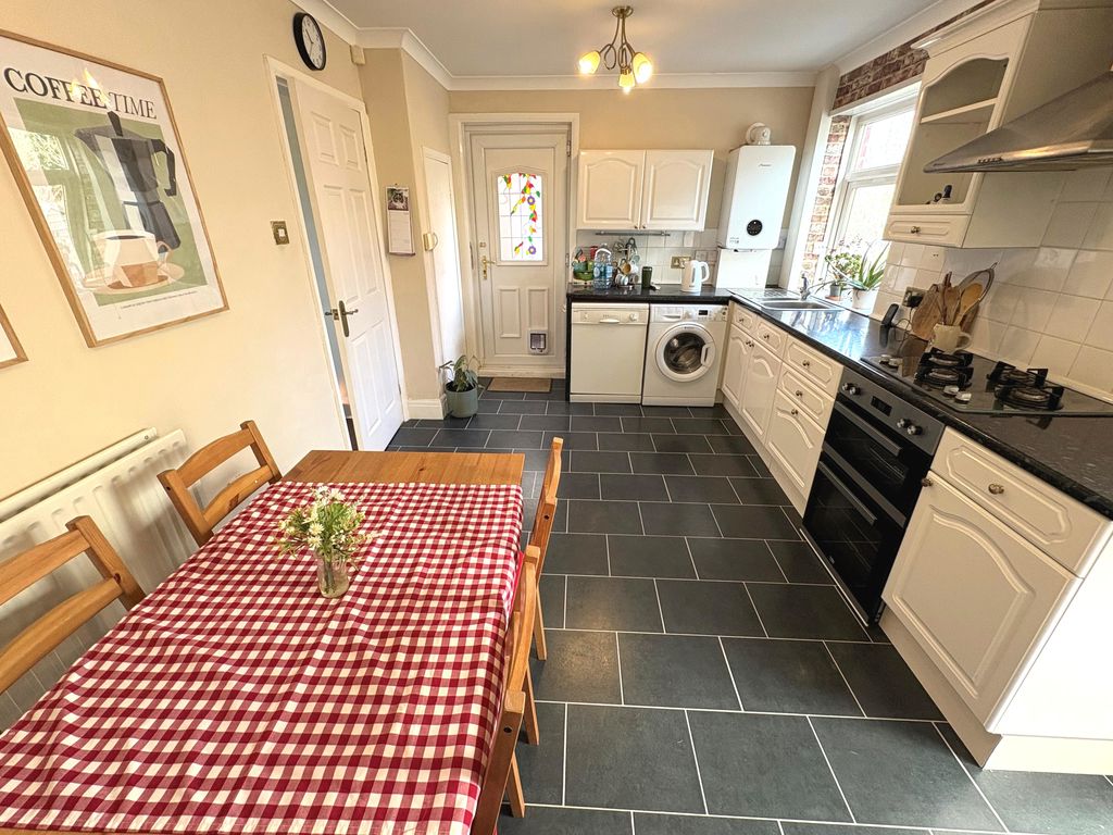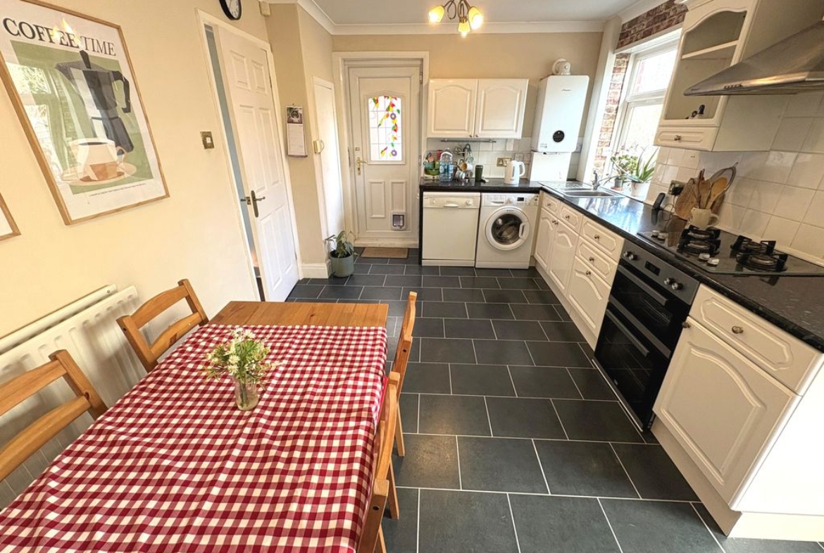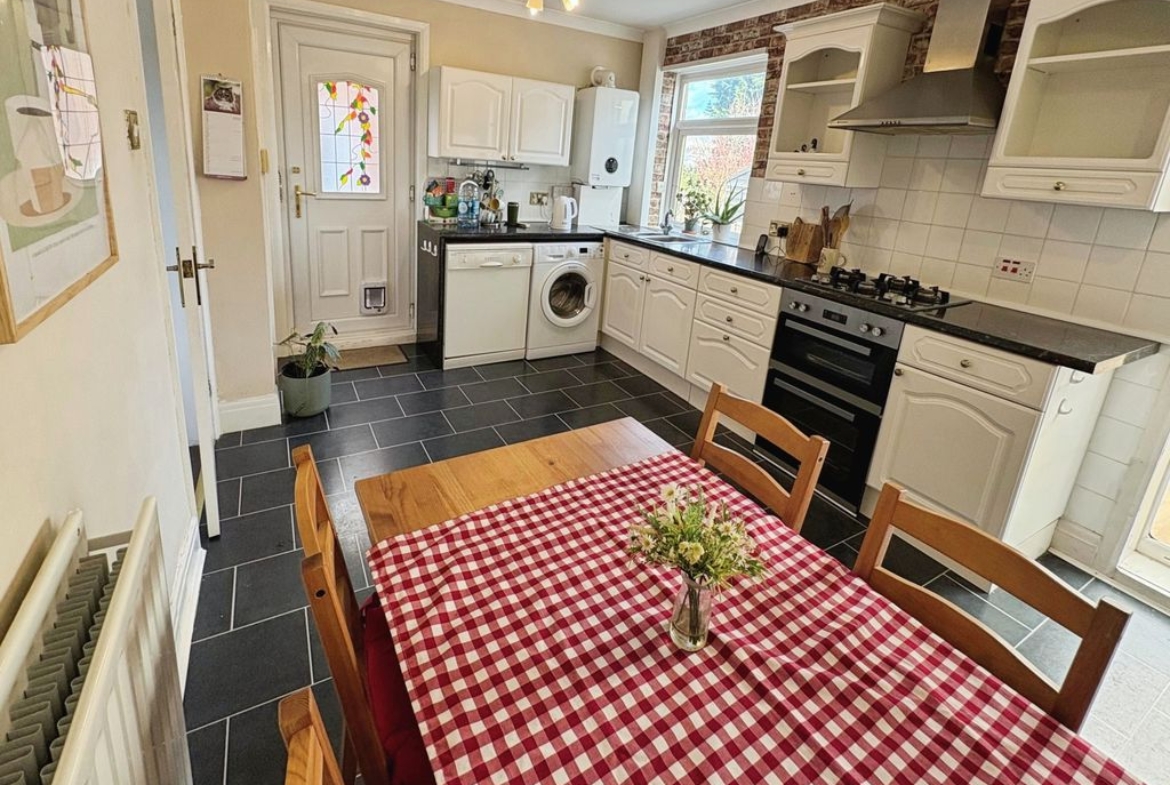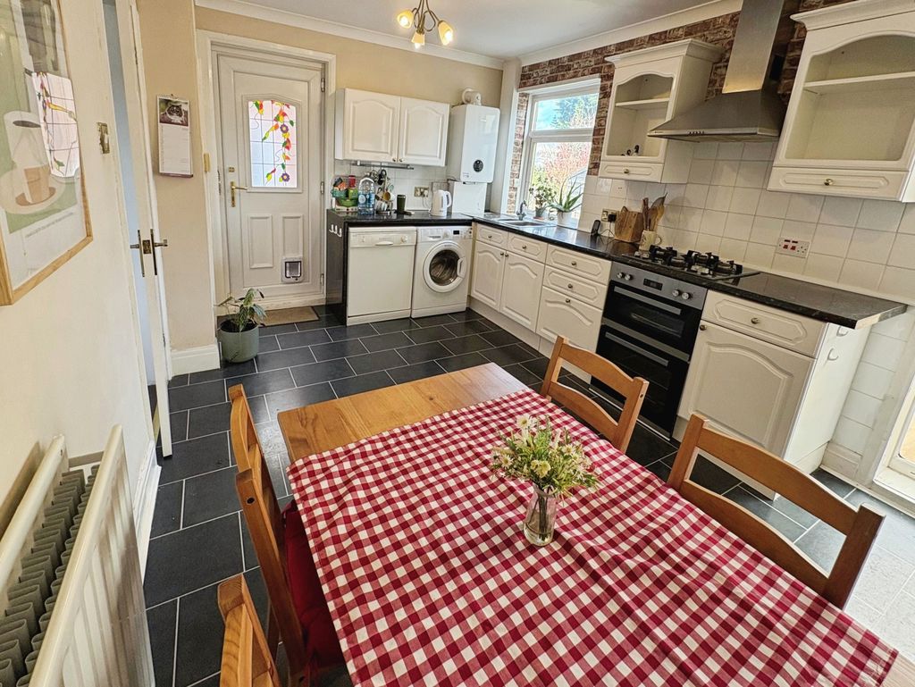 Step inside to a lobby which leads to the welcoming, comfortable lounge tastefully decorated with large window flooding the room with natural light. The good sized dining kitchen with views over the rear garden is well fitted with a range of wall and base units, work surfaces and space for a table and chairs ideal for entertaining family and friends.