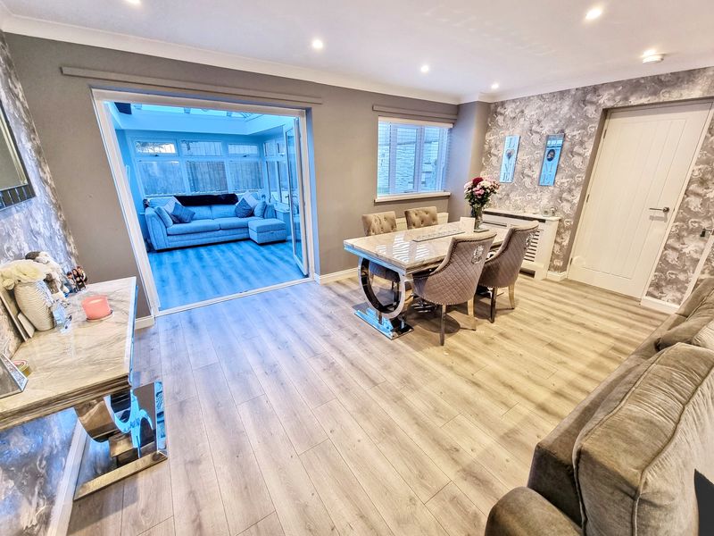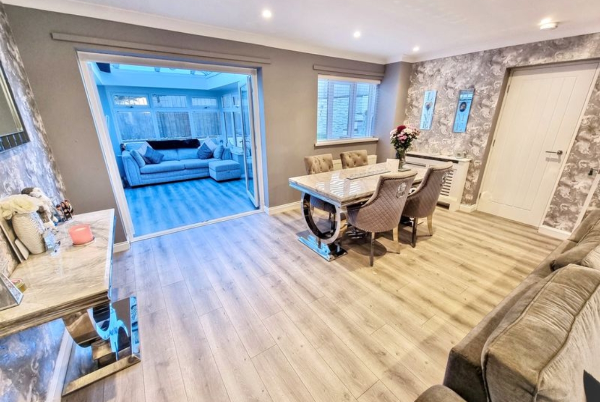 Entrance hallway meets a warm, inviting atmosphere leading to the lounge, conservatory, beautiful modern kitchen through to utility.