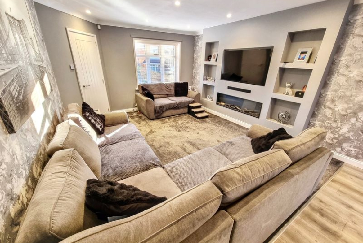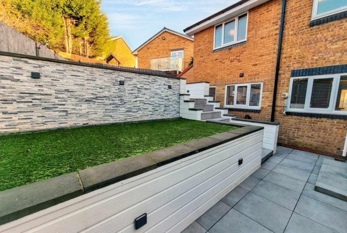The rear garden has a split-level design that includes a patio area for al fresco dining, low-maintenance astro turf lawn – perfect for enjoying summer evenings or relaxing weekends. Driveway to the front providing ample parking.