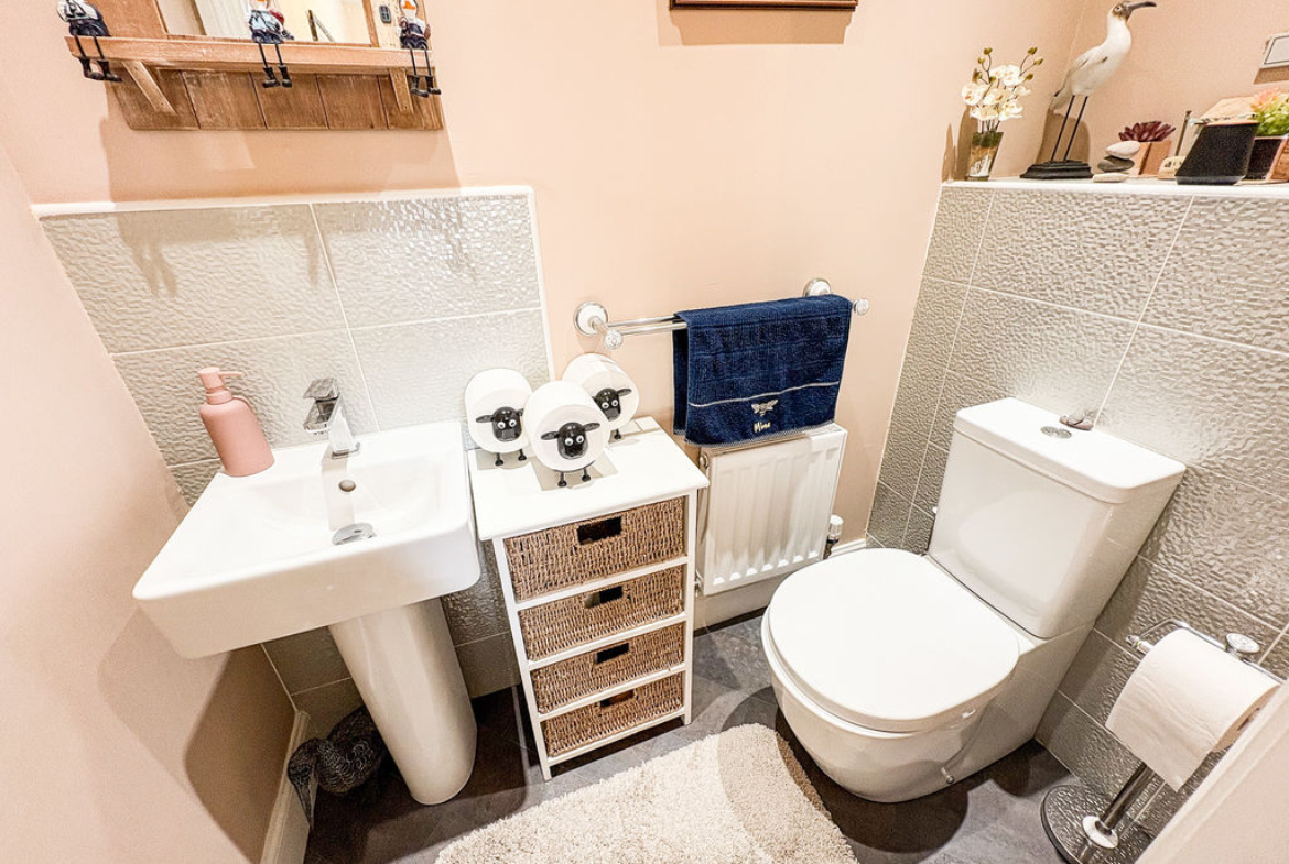 At the heart of the home is a stylish and spacious kitchen-diner, perfectly designed for modern family life and entertaining alike, with ample room for both cooking and dining. A convenient downstairs W.C. and a separate utility room enhance the practicality of the layout while maintaining the home’s charm.