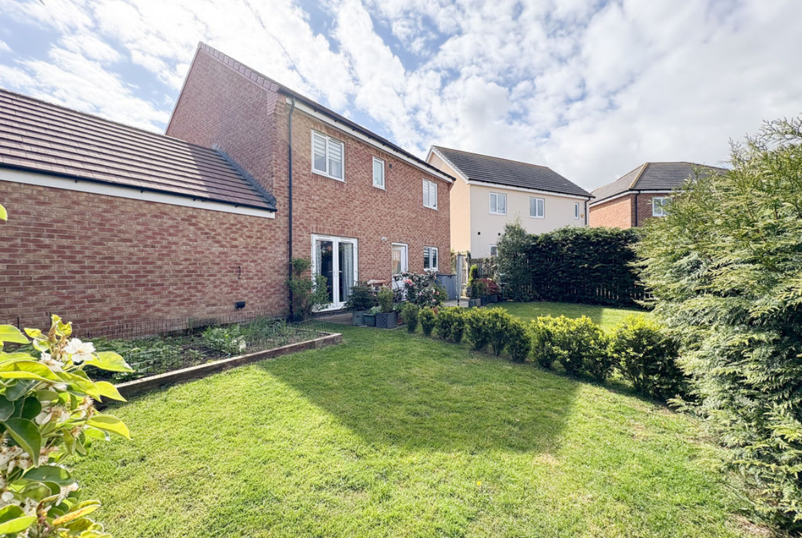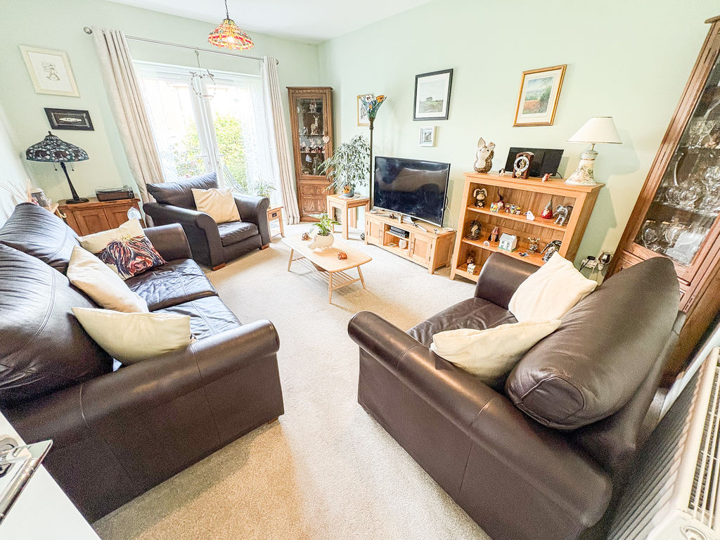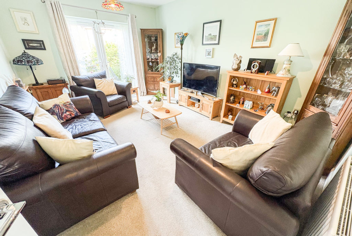 The property welcomes you through a bright and inviting entrance lounge, where double doors open seamlessly onto the expansive rear garden, creating a wonderful sense of space and a strong connection between indoor and outdoor living.