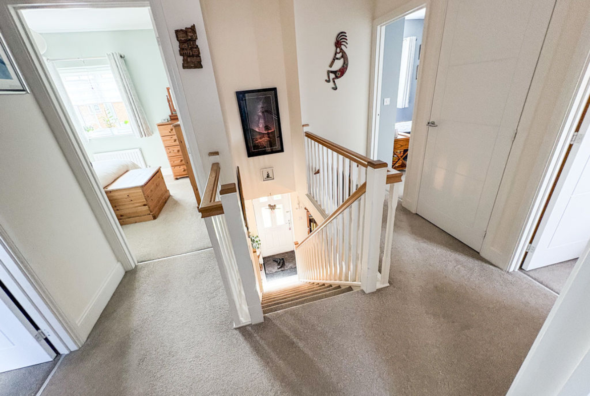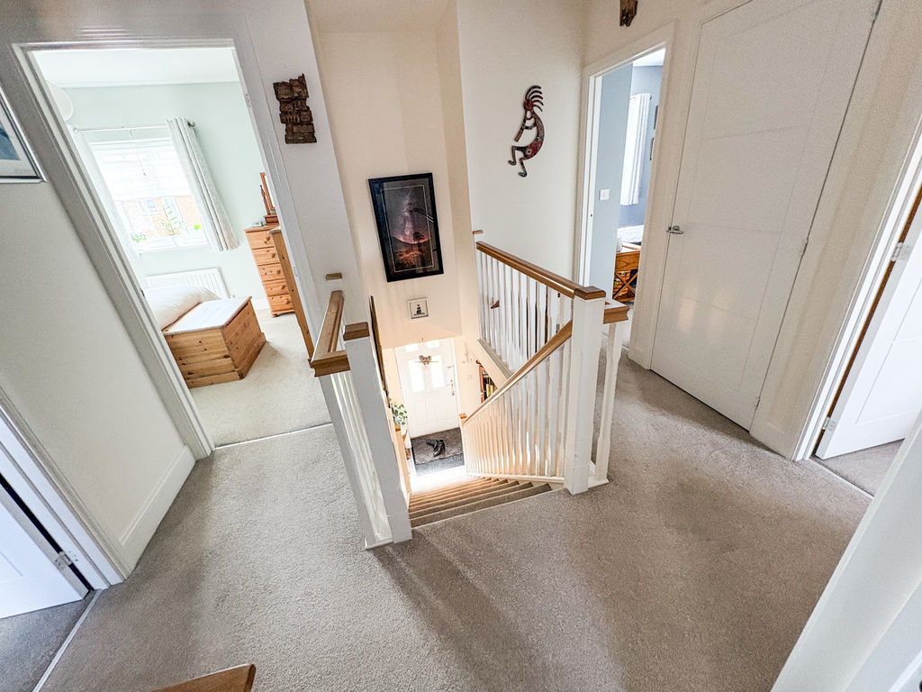 Upstairs, the generous proportions continue with four well-sized bedrooms. The principal bedroom benefits from a private en-suite bathroom, while a contemporary family bathroom comfortably serves the remaining bedrooms.