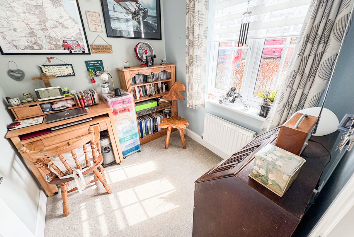 STUDY: (front): 7’64 x 6’68, (2.33m x 2.03m), double glazed window to front, and double radiator.