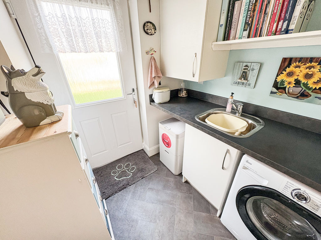 UTILITY ROOM: 6’13 x 5’94, (1.86m x 1.81m), fitted with wall and base units, stainless steel sink unit, plumbed area for washing machine and too to rear.