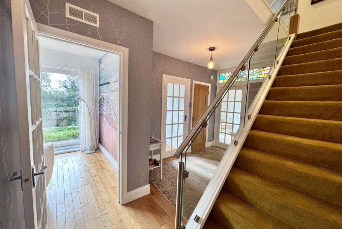 Set in one of the area’s most picturesque locations, this exceptional detached family home offers space, elegance and tranquillity in equal measure! Overlooking the beautiful Holywell Dene to the front, with walks into the Dene approximately 30 steps from your front gate, allowing a peaceful and natural outlook whilst remaining close to local schools, shops, bus routes, village pubs and a short drive from the newly operational Seaton Delaval train station. The natural light and space inside this wonderful, substantially updated home will capture both your heart and imagination, with a welcoming entrance porch and stunning hallway with feature turned staircase with contemporary chrome and glass staircase along with a large cloaks cupboard, perfect for storage! downstairs cloaks/w.c. The ground floor living accommodation is perfect for family living and welcoming guests/entertaining with a fabulous lounge overlooking and with patio door out to the front garden, with a delightful, elevated position and ample privacy, the lounge flows through to the rear dining room and sitting room, again with patio doors out to the rear garden. The front facing snug is an absolute joy, overlooking and opening out to the front garden and with fitted book shelves, perfect for the avid reader wanting to enjoy nature, peace and quiet in your own front room, separate study, fantastic family dining kitchen with peninsula, sleek high gloss fitted units and integrated appliances, utility room, front workshop and access into the substantial double garage with electric roller door and access out to the garden. Gallery landing, five superb sized bedrooms, the principal bedroom with luxurious en-suite shower room, contemporary and stylish family shower room, wonderfully landscaped front and rear gardens, the front with mature plants, shrubs and flowers, access to the second large garage, front and rear driveways! Just amazing! Freehold. EPC: TBC, Council Tax Band: F, Gas, Electric, Water, Drainage: Mains Connected. Heating: Gas Warm Air Central Heating System. Broadband: Sky, Mobile Phone Blackspot: No.