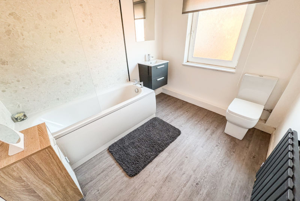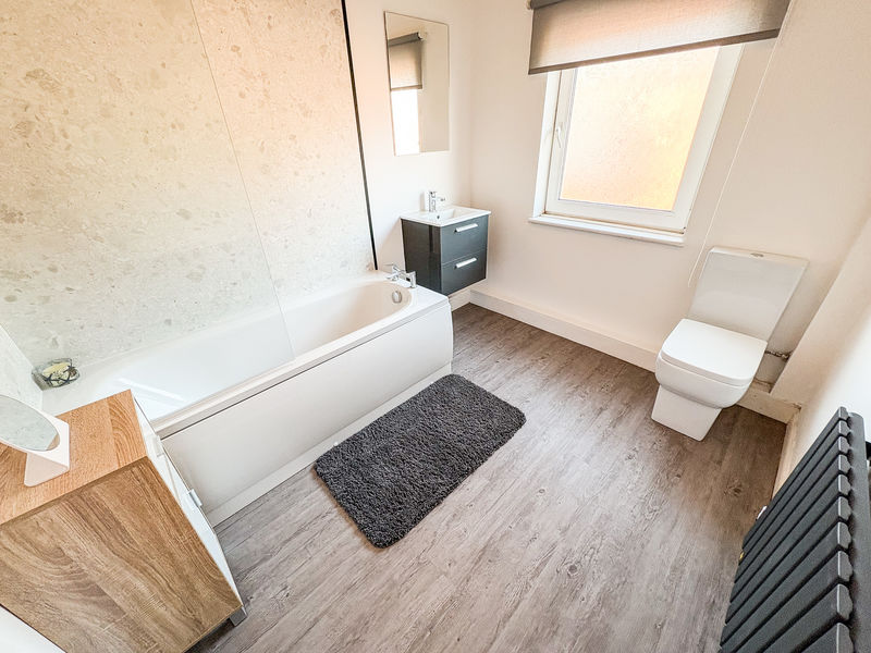 FAMILY BATHROOM: 3 piece suite comprising: Panelled bath, low level WC and wash hand basin. Double glazed window to the rear and single radiator.
