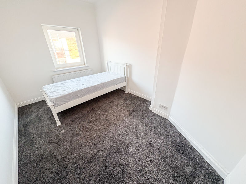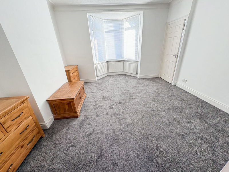 Double glazed Bay window, single radiator, fire with wood surround and built in storage cupboards.