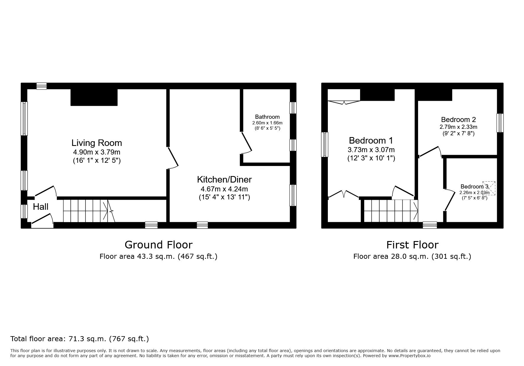 Bedroom Three: 7’5’’ 2.26m x 6’8’’ 2.03m