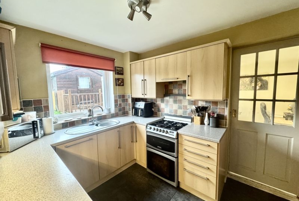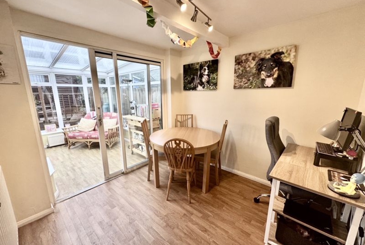 Sought after, link-detached family home on this popular residential street. Close to popular local schools, shops, bus routes and a short walk from the newly operational train station. With an impressive kerb appeal, set back from the main road, there is a spacious driveway and garage to the fornt. Entrance porch, open plan lounge with feature bow window, attractive fireplace and electric fire, open through to the dining room with French doors out to the garden area, family kitchen with access through to the extended dining room and conservatory enjoying access out to the rear garden. Three bedrooms to the first floor, one with fitted wardrobes. Modern family bathroom with shower. Large rear garden with delightful South-Easterly aspect and large garden office, perfect for home working or as a gym, with electric points. Freehold. EPC: C, Council Tax Band: C. Gas, Electric, Water, Heating, Drainage: Mains Connected. Broadband: Cable. Mobile Phone Blackspot: No.