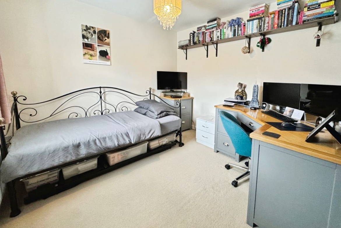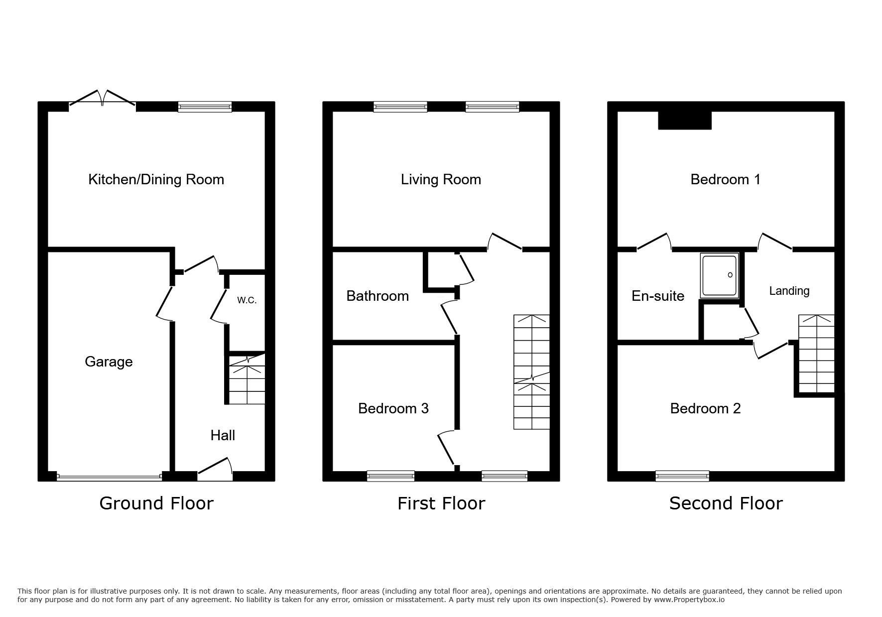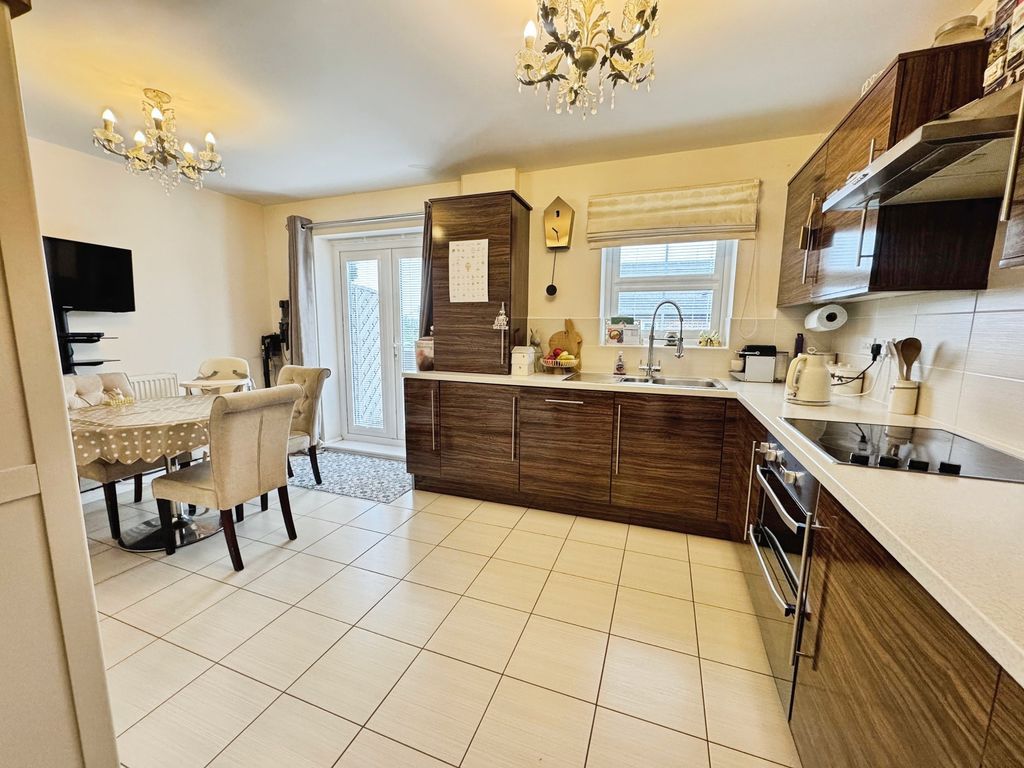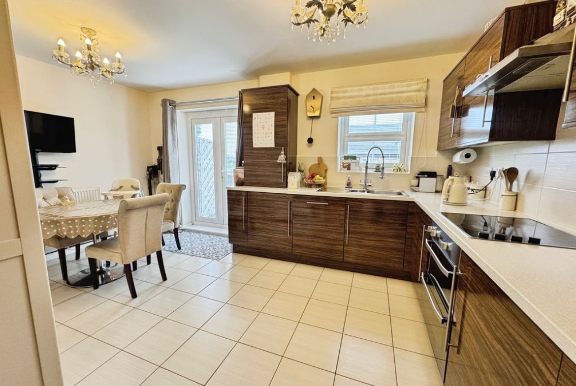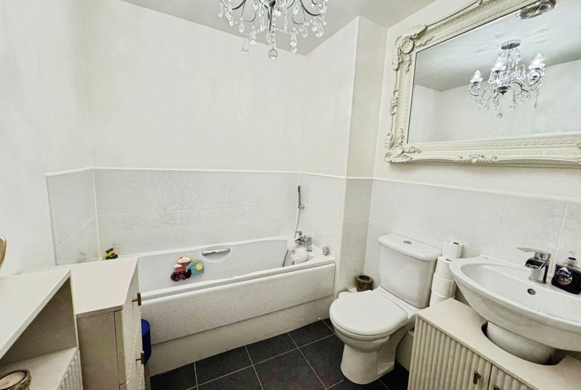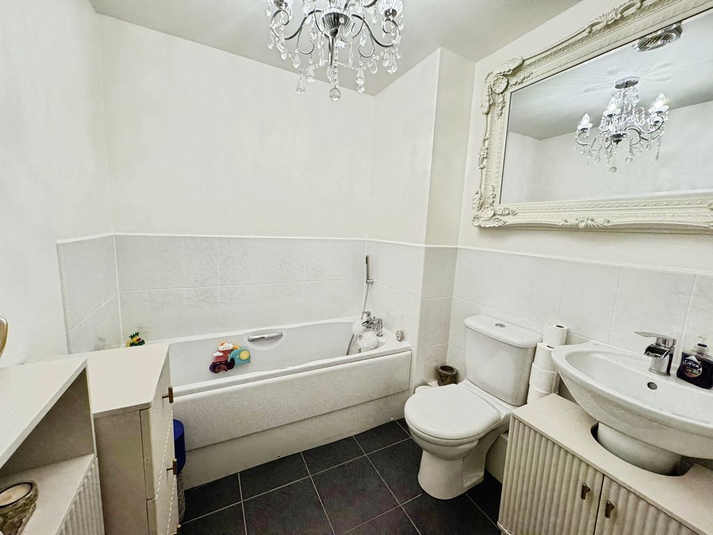 Arranged over townhouse-style levels, the property includes a reception room on the first floor, providing a comfortable main living area away from the street. The kitchen features dining space and direct access to the garden, making it convenient for everyday meals and outdoor entertaining. There is also a useful downstairs WC. All three bedrooms are doubles; the main bedroom benefits from an en-suite and built-in wardrobes, while a separate family bathroom serves the remaining rooms. The house is in good condition throughout.