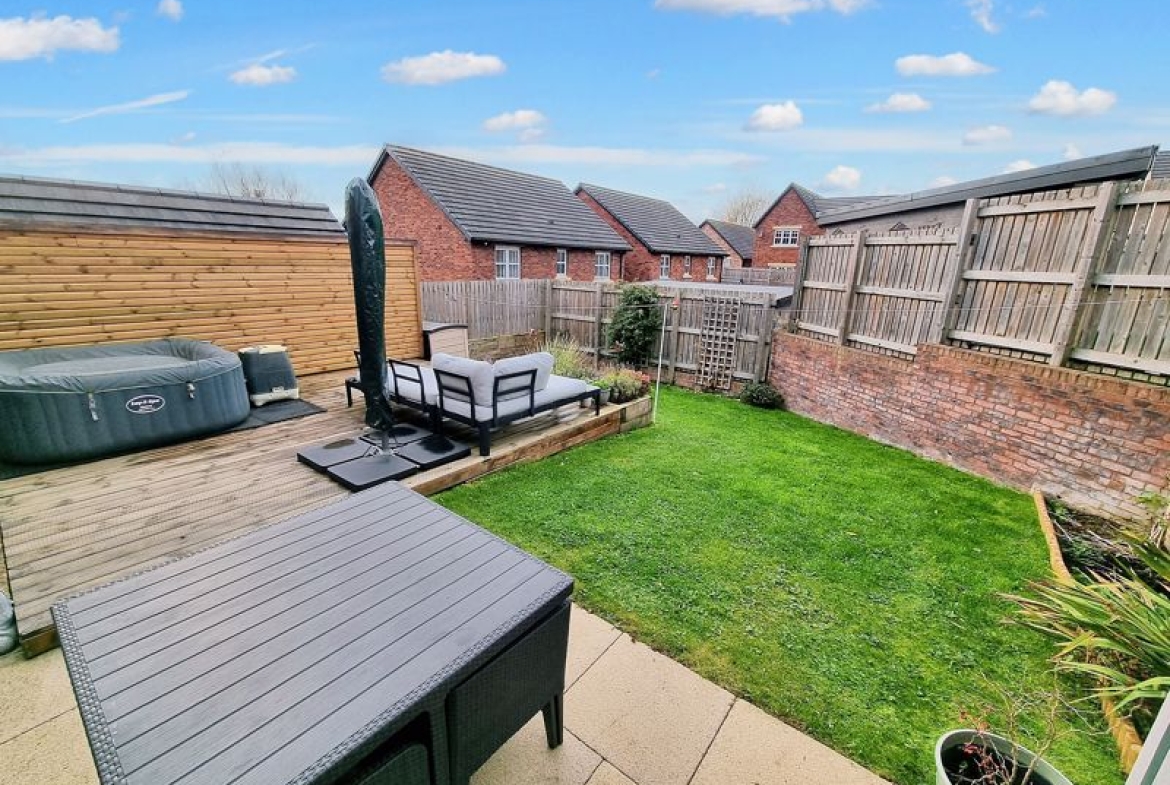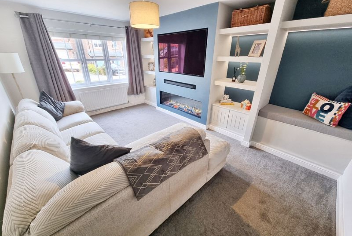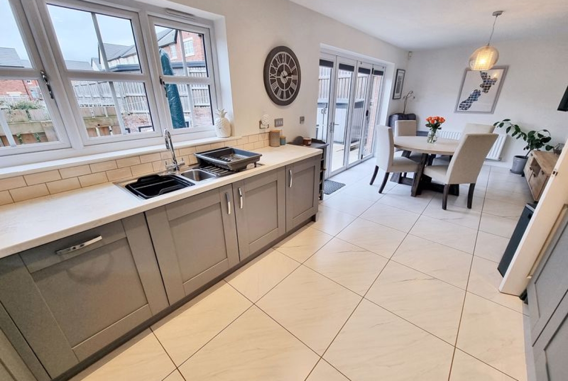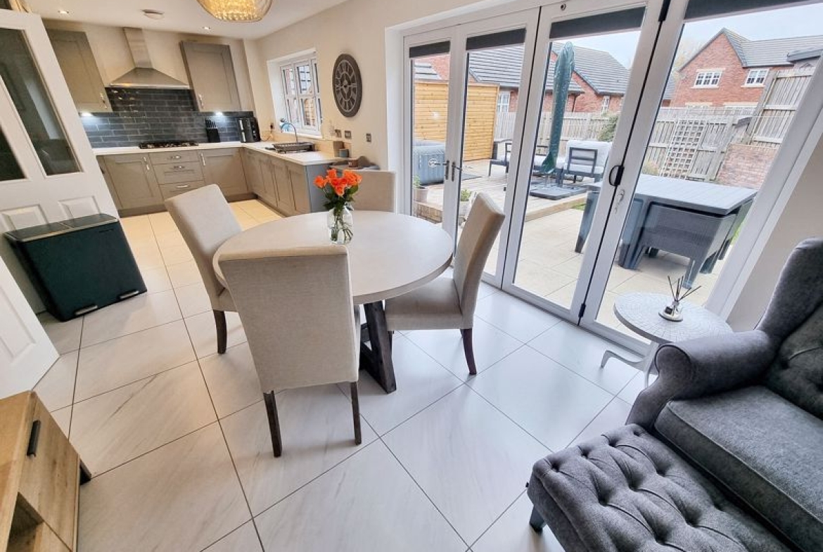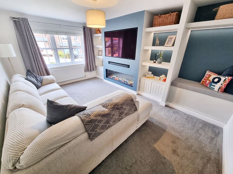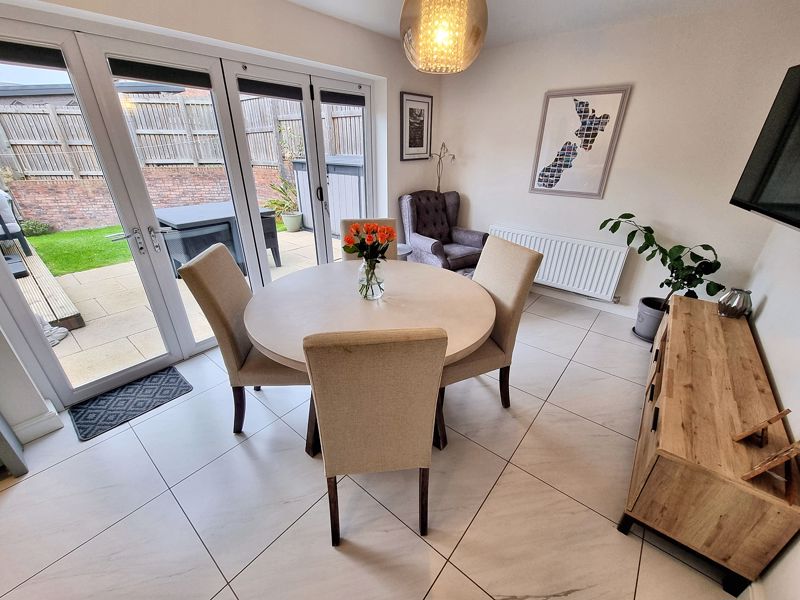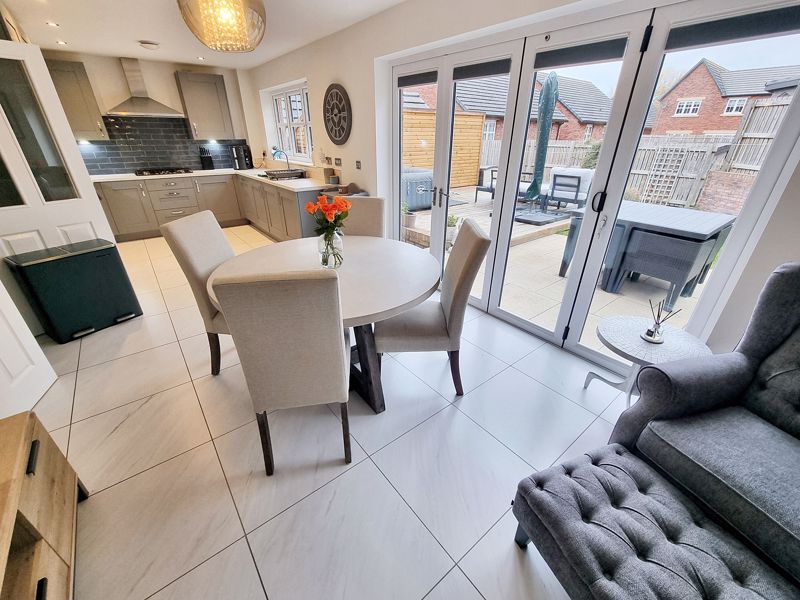 Internally, the accommodation comprises an entrance hall, lounge with media wall and feature fire, cloakroom/W.C and a modern fitted kitchen and diner with BI folding doors leading to the rear garden. The first floor features four well-proportioned bedrooms: the main bedroom benefits from an en-suite, two further double bedrooms offer ample space for family or guests, while the fourth bedroom would serve perfectly as a home office.