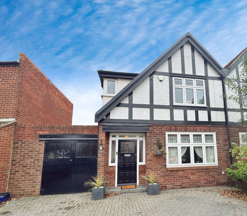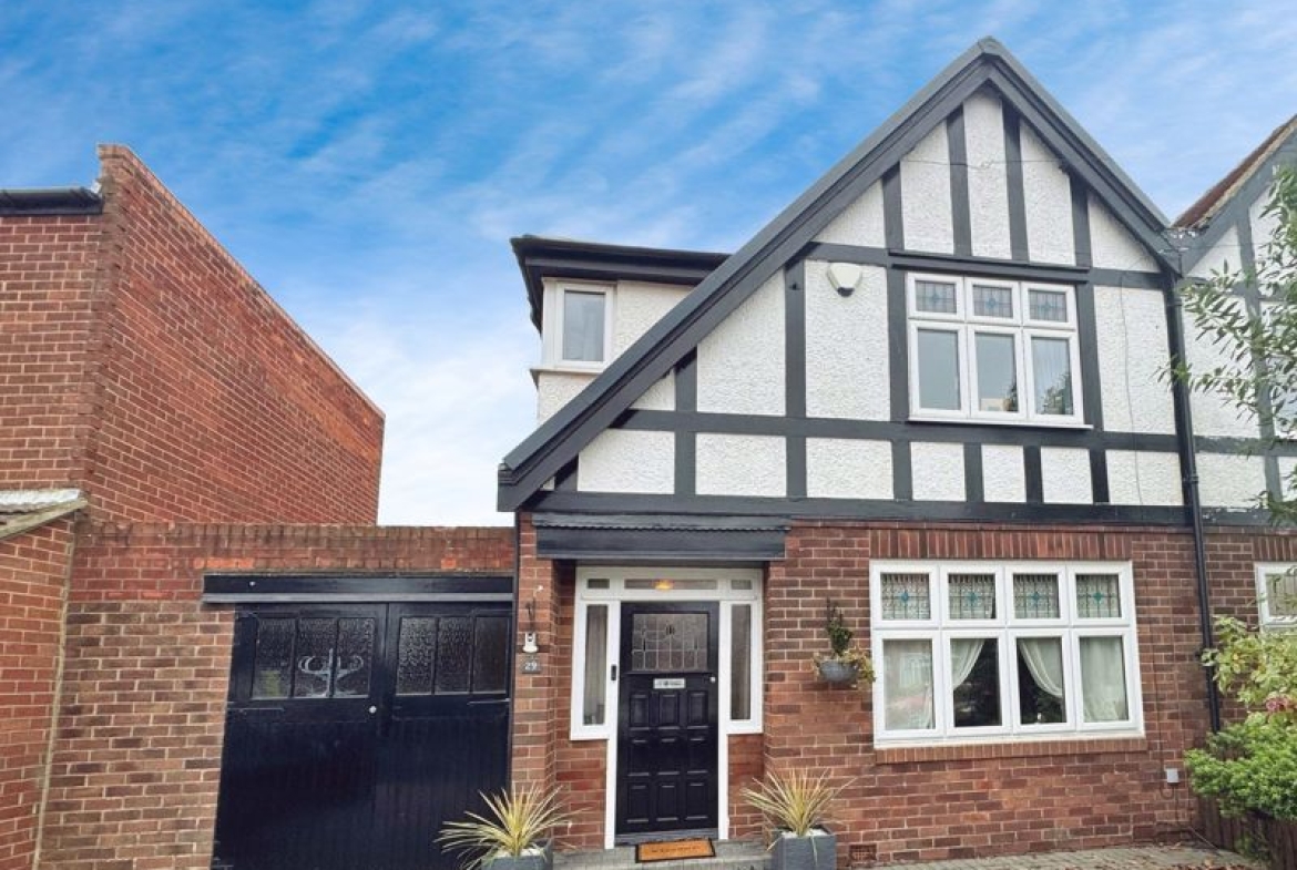 This charming 1930’s mock Tudor semi captures all the warmth and character of its era, combining traditional features with a welcoming homely feel. With fabulous kerb appeal and a substantial, South-Westerly rear garden with elevated, decked patio, front double width driveway and garage, this highly sought after style of property offers both timeless elegance and a wonderful outdoor space for the family. Stunning hallway with turned staircase up to the first floor, light and airy front lounge, separate dining room overlooking the garden area and showcasing a feature fireplace and wood burning stove, perfect for cosy evenings. Extended family dining kitchen with French door out to the garden, the kitchen also provides access into the garage. Spacious landing area, three large doubles, luxurious re-fitted bathroom with separate shower cubicle and dual shower with forest waterfall spray. Within catchment for popular local schools, walking distance to the Metro, vibrant Monksetaon Village with its vibrant shops and eateries, it is also a short drive from the award winning Whitley Bay town centre and our gorgeous beaches. Freehold. EPC: D, Council Tax Band: C. Gas, Electric, Water, Heating, Drainage: Mains Connected. Broadband: Fibre, Mobile Phone Blackspot: No