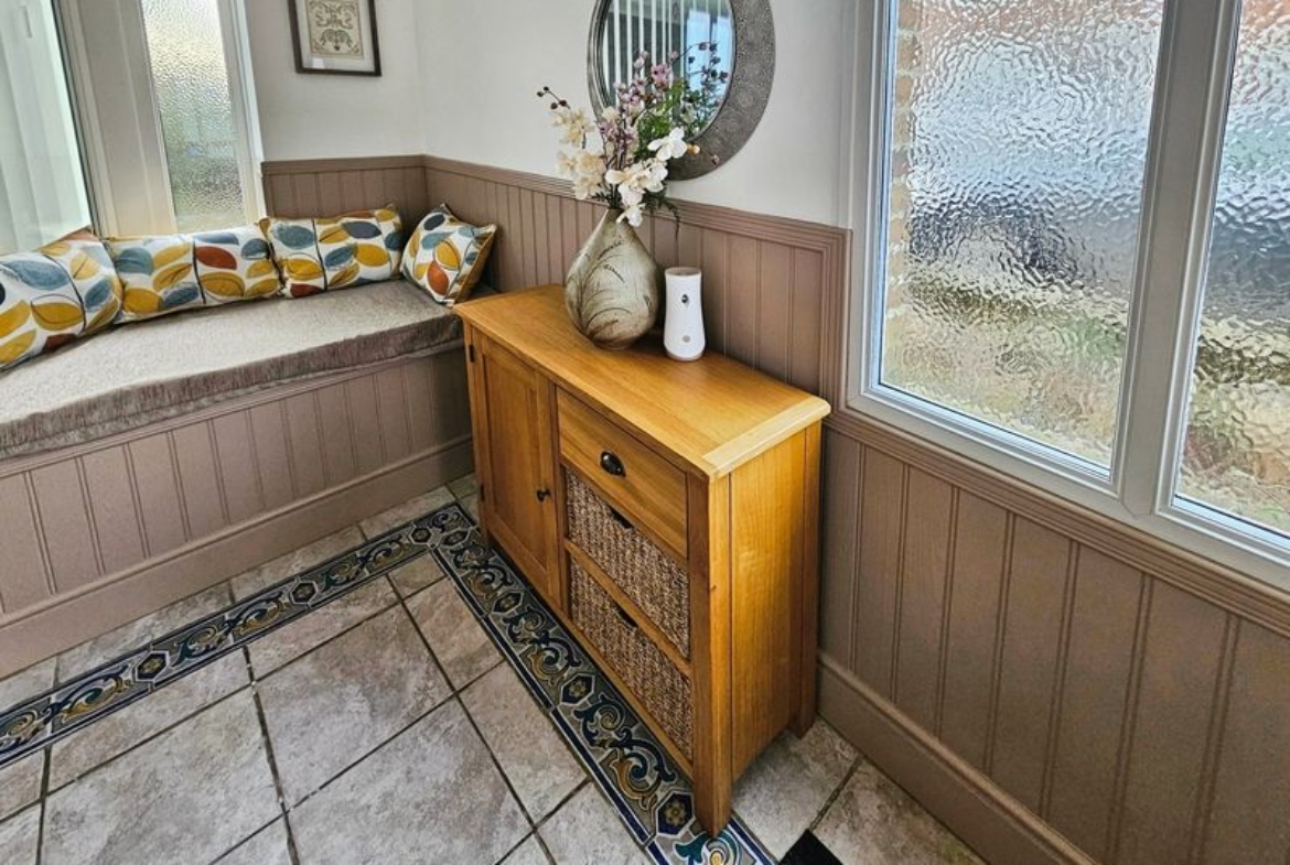 Via composite door to porch with double glazed windows, seating area, tiled floor, UPVC entrance door.