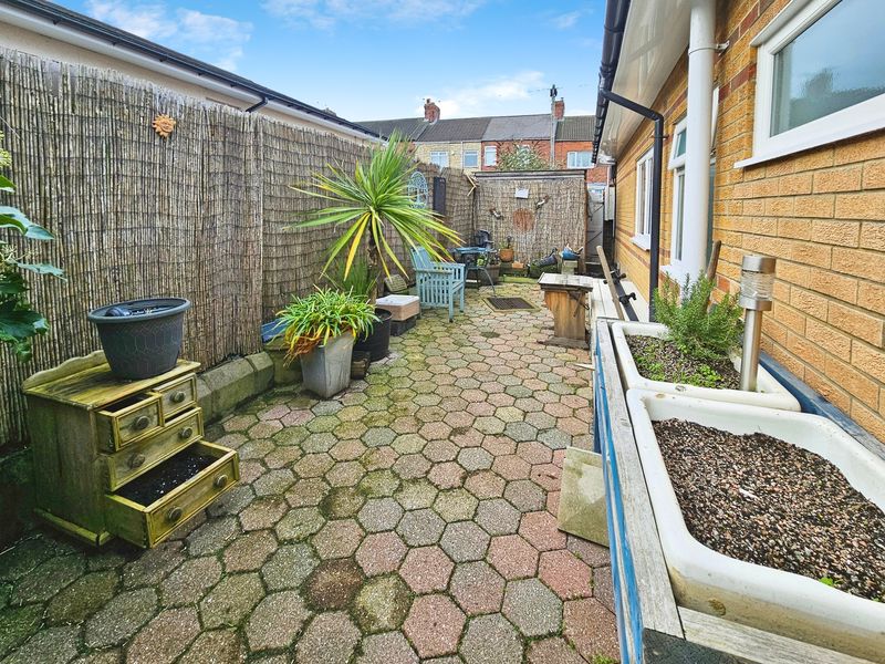 Double glazed window to side, fitted wall and base units, composite sink with mixer tap, space for fridge freezer, plumbed for washing machine, tiled flooring.