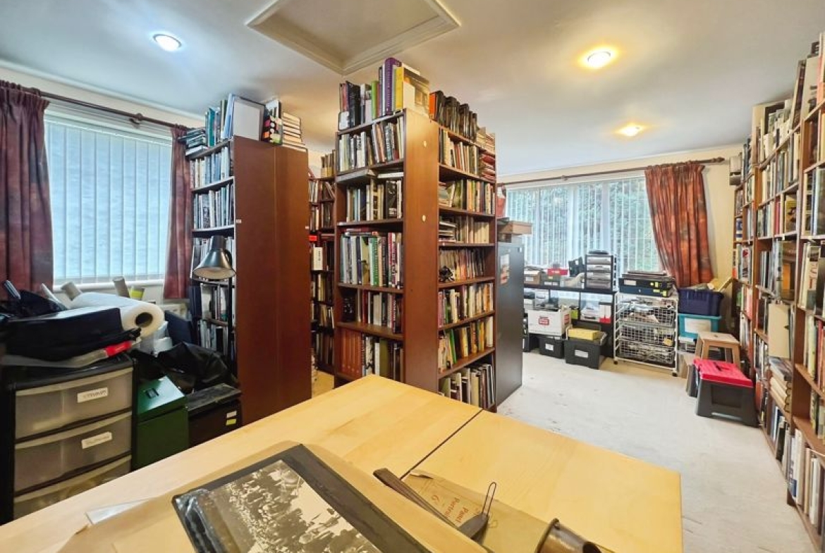There are four double bedrooms, including a master bedroom with dual windows, built-in wardrobes, and the benefit of an en-suite shower room. The remaining three bedrooms are also generously proportioned, ensuring ample space for the whole family. A family bathroom serves the additional bedrooms.