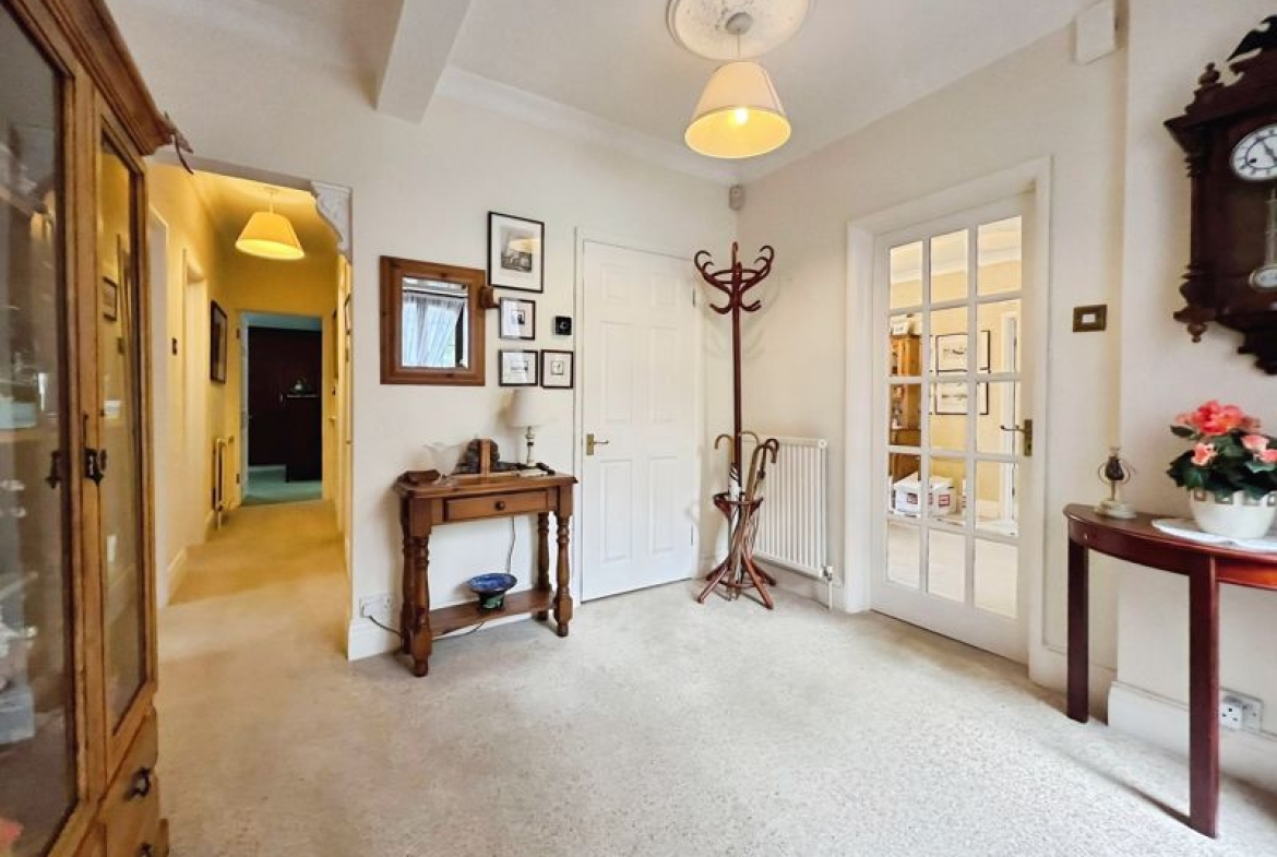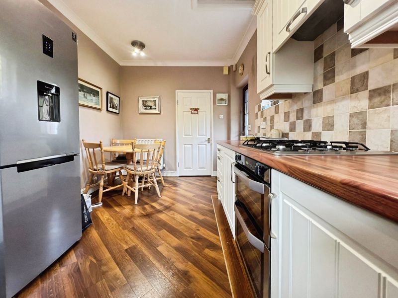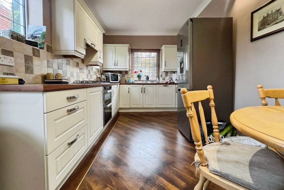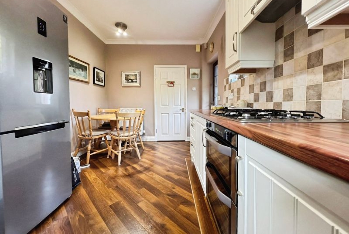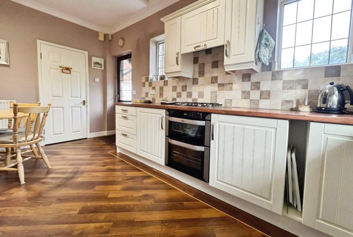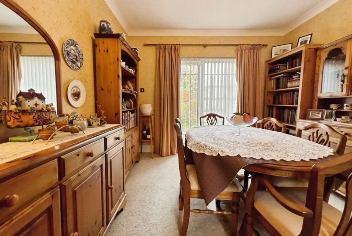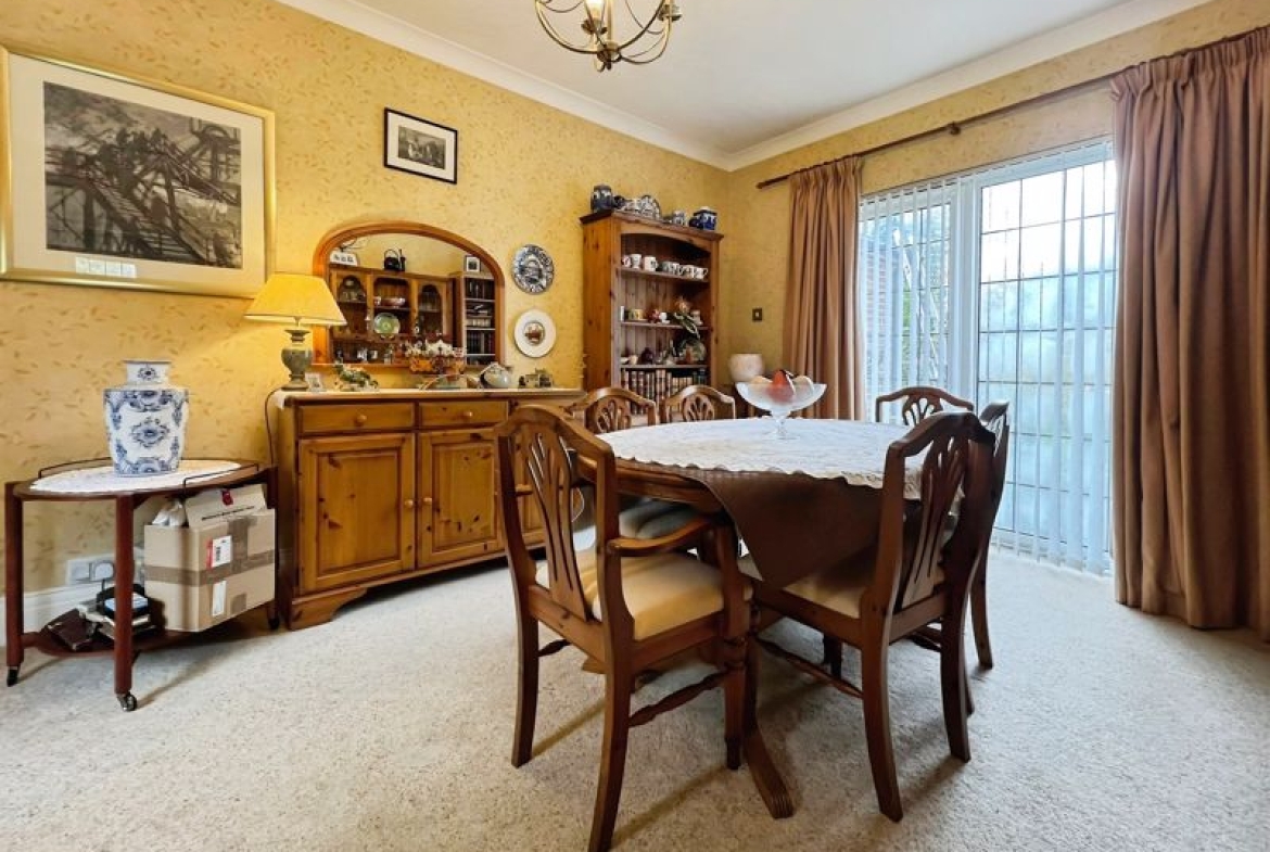 This bungalow offers three versatile reception rooms. The formal living room features large windows and a fireplace, ensuring a bright and welcoming space. The dining room, with dual aspect windows and direct access to the garden, is perfect for gatherings or family meals. Additionally, the sun room provides more garden access, creating a seamless connection between indoor and outdoor living.