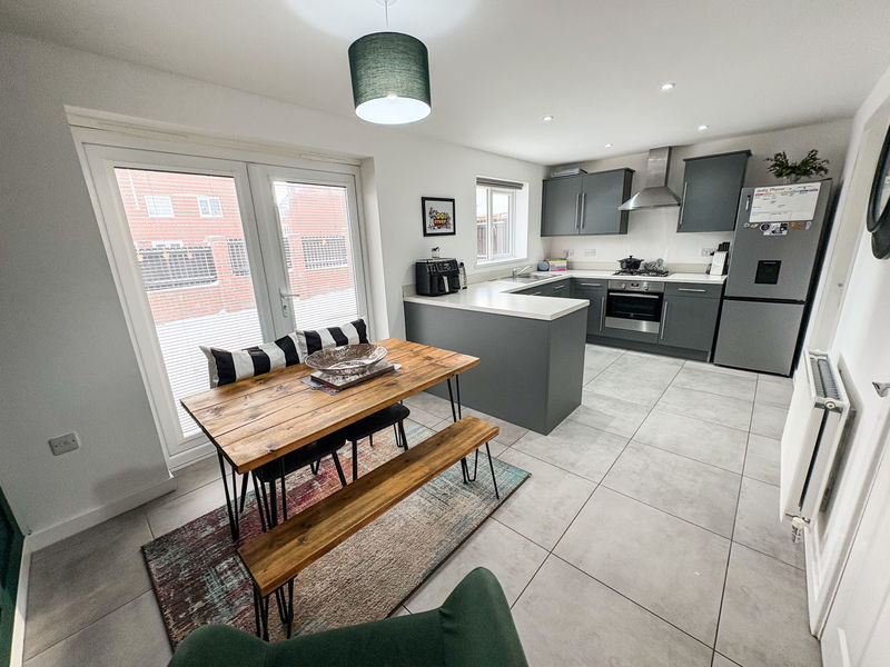 On entering the home, a welcoming and stylish entrance hall sets the tone for the high standard found throughout. The light and airy lounge provides a comfortable space to relax and unwind, while the impressive dining kitchen forms the heart of the home. Fitted with a range of integrated appliances, this fantastic family space also benefits from double glazed French doors that open directly onto the rear garden, creating an ideal setting for everyday meals and entertaining alike. A separate utility room adds practicality, complemented by a convenient downstairs cloakroom and WC.