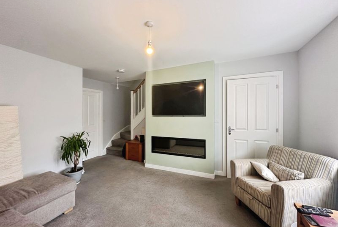 The property briefly comprises:- Entrance porch, leading to a downstairs W.C. and spacious lounge. The lounge has been finished with grey carpets, modern décor and electric fire which is the focal point of the room. This leads seamlessly into the open plan kitchen diner located to the rear of the property. This is a great space for families. The kitchen has been fitted with a range of wall and base units offering excellent storage views over the rear garden, which can be accessed via the double patio doors. Appliances include integrated fridge/freezer, electric oven, gas hob, dishwasher and washing machine.