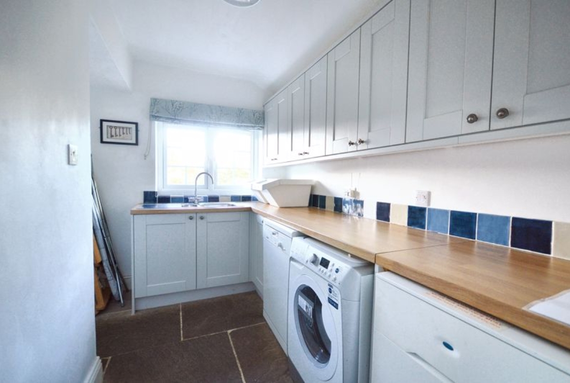 UPVC double-glazed window | Fitted units comprising; 1.5 stainless steel sink, space for dishwasher and washing machine | Oil-fired central heating boiler | Stone flagged floor | Door to store