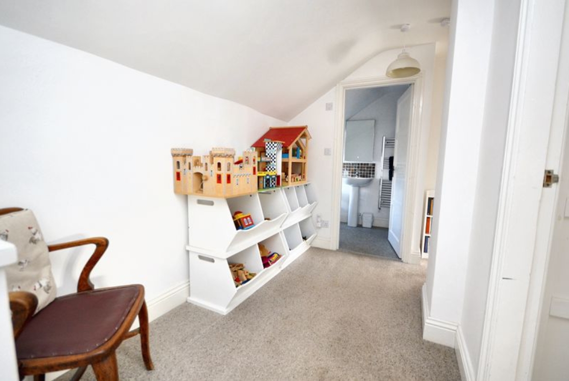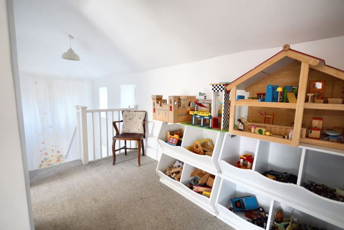 Upstairs, there is a shower room and two well-proportioned double bedrooms with beautiful countryside views. One bedroom benefits from an en-suite bathroom that includes a roll-top bath, and the landing is notably spacious, providing scope for bookcases and further storage.