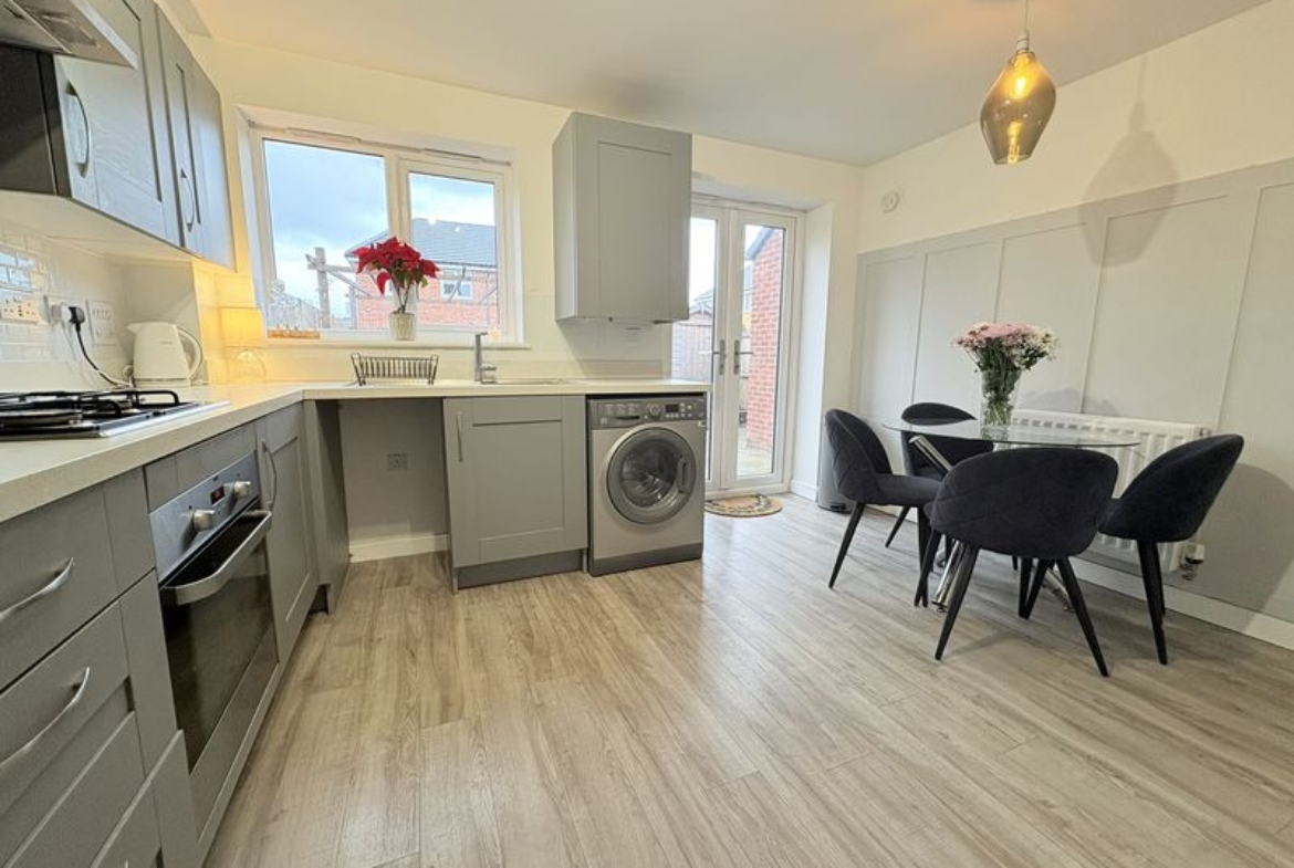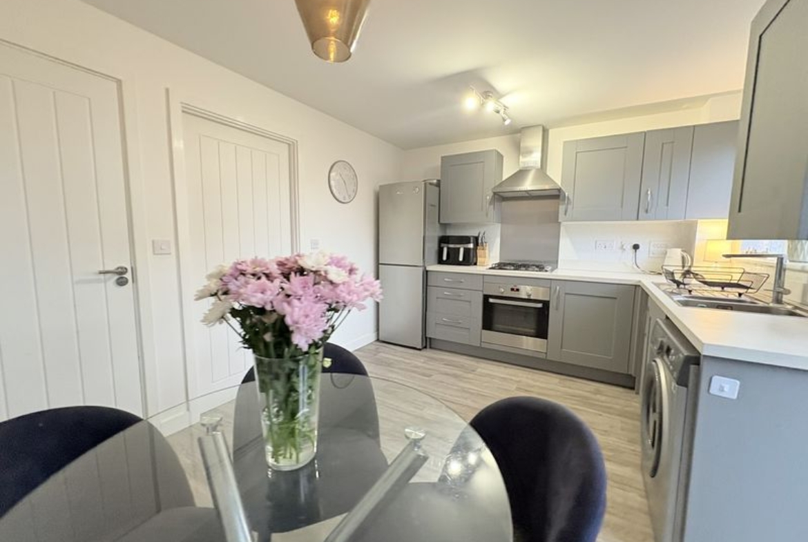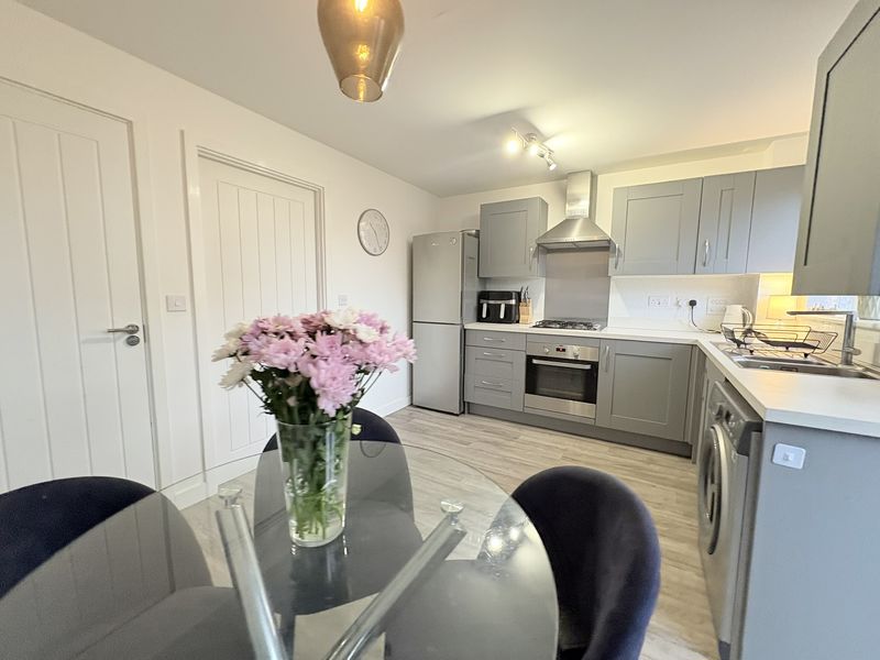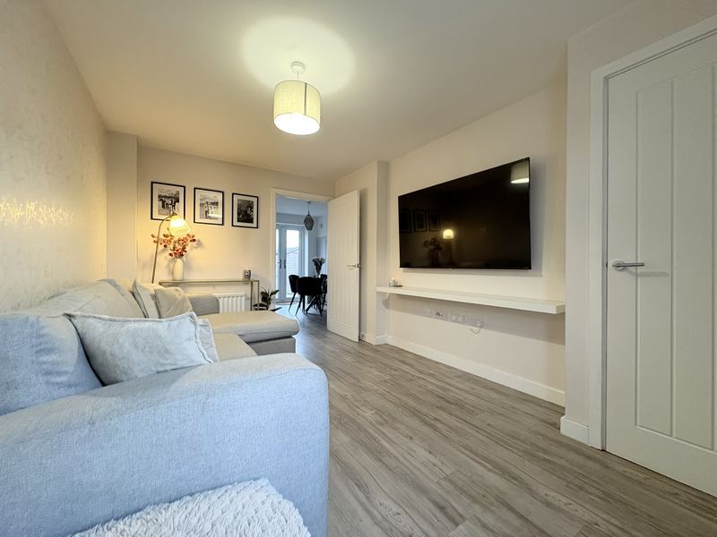 This beautifully presented three bedroom semi-detached home offers stylish, modern living in a highly convenient location. The ground floor welcomes you with a bright and contemporary living room, featuring sleek flooring, neutral décor and a wall-mounted media area that creates a clean, uncluttered finish. The space feels both cosy and practical, perfect for relaxing or entertaining. To the rear, the impressive dining kitchen provides a sociable heart to the home. Fitted with modern cabinetry, integrated appliances and generous worktop space, it comfortably accommodates a dining table while enjoying direct access to the garden through French doors. This seamless indoor-outdoor connection makes it ideal for summer entertaining. Upstairs, there are two well-proportioned bedrooms on the first floor, both finished in calming tones and offering excellent versatility for bedrooms, guest rooms or home offices. The contemporary family bathroom is beautifully styled with a modern suite, bath with shower over, and elegant tiling. The top floor is dedicated to a spacious principal bedroom, offering a peaceful retreat with excellent natural light and a stylish en-suite shower room. This floor feels private and luxurious, creating a hotel-style atmosphere. Externally, the property benefits from off-street parking to the front. The rear garden features a paved seating area, gravelled sections and a raised decking area with pergola, perfect for outdoor dining and relaxing. A timber shed provides useful storage. This is a superb home that combines modern styling, flexible accommodation and excellent outdoor space. Freehold. EPC: B Council Tax Band: C Gas, Electric, Water, Heating, Drainage: Mains Connected. Broadband: Cable, Mobile Phone Blackspot: No