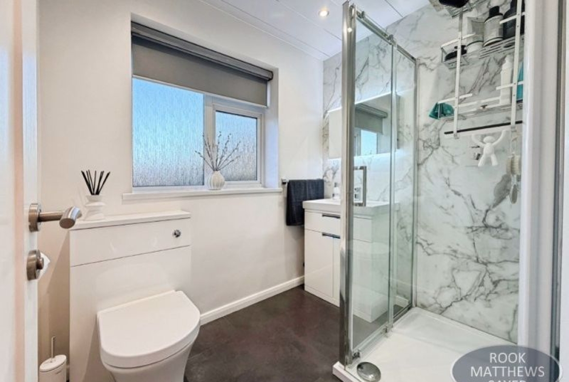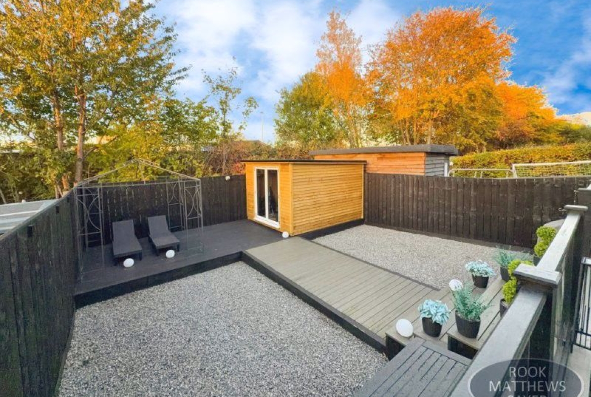 Upstairs, the property offers three well-proportioned double bedrooms, each thoughtfully finished with built-in wardrobes, providing ample storage for modern family living. A modern shower room serves the bedrooms, offering stylish fixtures and a contemporary feel.