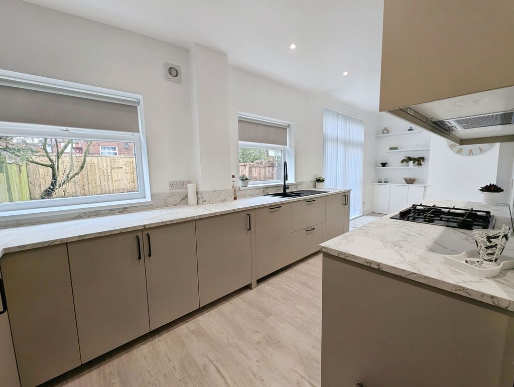 Recently refurbished to a modern standard is this semi detached house. The property is located in Fenham, and is available for sale with no chain. The accommodation to the ground floor briefly comprises of hallway, lounge and dining room opening to kitchen. To the first floor is a landing, three bedrooms and bathroom. Externally, there are gardens to the front and rear, driveway and garage.