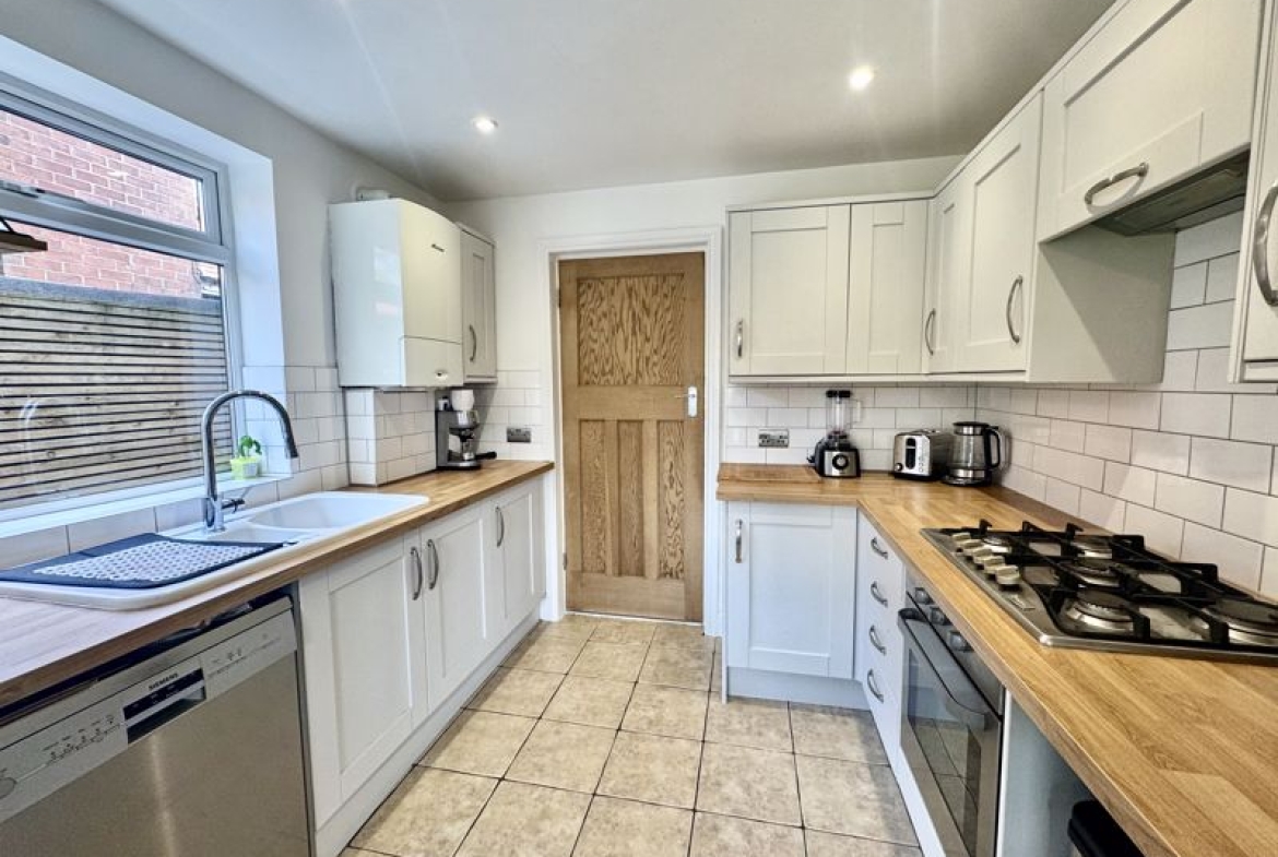 A gorgeous, 1930’s semi-detached family home with open aspect to the rear. Benefiting from a two story extension and located on this ever popular street within West Monkseaton. Benefiting from excellent local schools and a Metro within walking distance, close to Sainsburys, bus routes and a short drive from both Monkseaton Village, Whitley Bay and the sea front! Well presented throughout and showcasing a generous extension to the ground floor, entrance porch, hallway opening through to a superb sized family living and dining area with gorgeous marble fireplace and gas, living flame fire, the dining area showcases two lots of French doors out to the garden allowing maximum light into this sunny room, the kitchen is beautiful, boasting stylish and contemporary units and integrated appliances, separate utility room and access through to the garage. First floor landing area, three double bedrooms, the principle bedroom with feature bay window and walk- storage area. Stunning family bathroom with shower and forest waterfall spray. Private and enclosed rear garden with lawn, borders and feature pebbles, front driveway and garage. Freehold. EPC: D, Council Tax Band: C. Gas, Electric, Water, Heating, Drainage: Mains Connected. Broadband: Fibre, Mobile PHone Blackspot: No