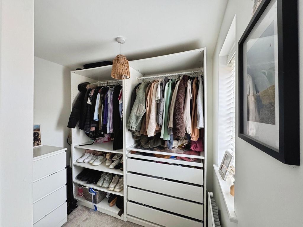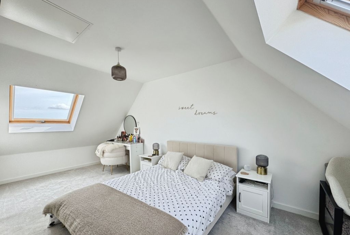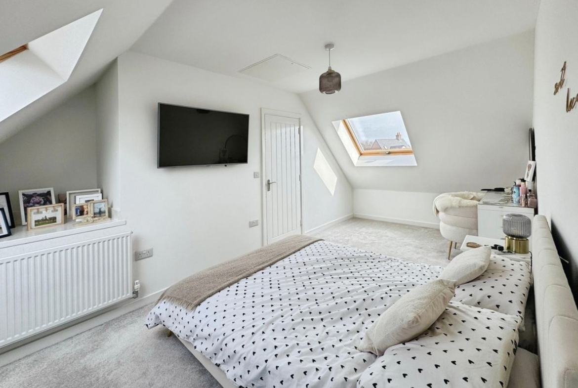 To the upper first floor of the accommodation, you are greeted with two bedrooms, one double and one single, which is currently being used as a dressing room by its current owners. The main family bathroom has been fitted with W.C., hand basin, bath tub and shower over bath. To the top floor you will find the master bedroom, which spans the entire floor, currently fitted with light grey carpets and crisp white walls. There is also a large linen cupboard, providing that all important extra storage.
