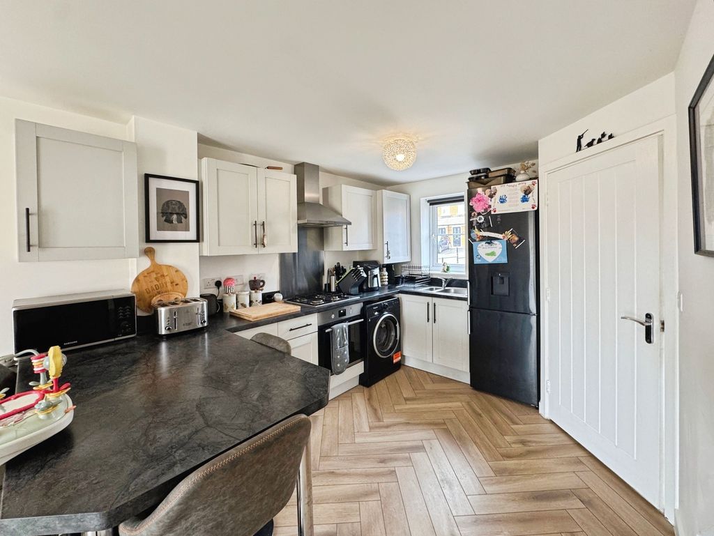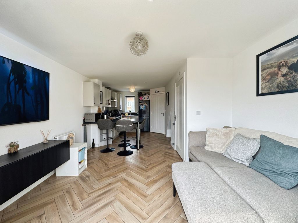 The property briefly comprises:- Entrance hallway, a well-presented open plan lounge/kitchen with great views overlooking the garden from the double patio doors. This space has been finished with modern white walls and complimented with LVT herringbone style flooring. The modern kitchen has been fitted with a range of wall and base units, offering an abundance of storage and appliances to include a four-ring gas hob and electric oven. You further benefit from a downstairs W.C.